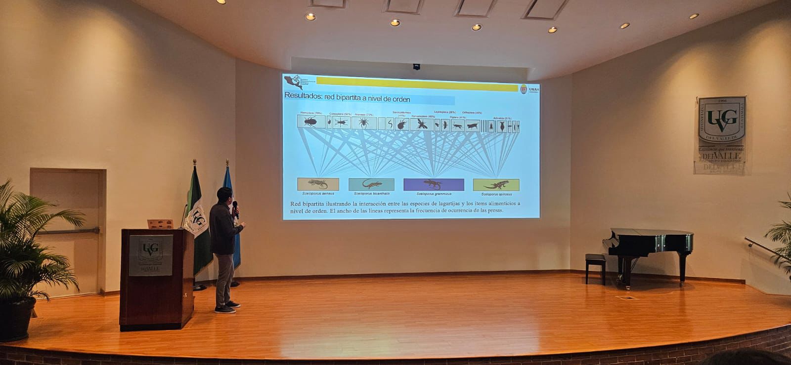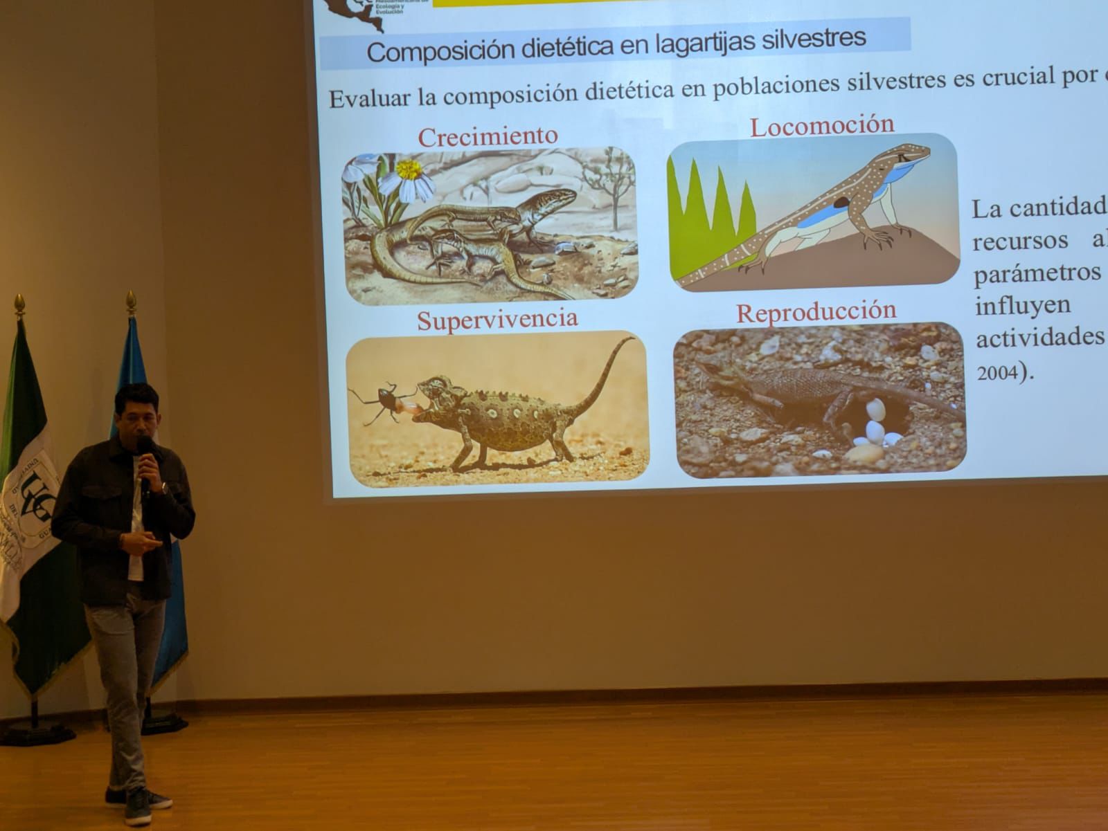 En esta ocasión, el Dr. Mauricio Hernández, docente del Departamento de Biología Celular y Genética, presentó la ponencia “Menú alimenticio de las lagartijas Sceloporus: variación estacional desde un enfoque molecular para evaluar la dieta en poblaciones silvestres”, aportando nuevos hallazgos y conocimientos en el estudio ecológico de reptiles a partir del análisis molecular de su alimentación.