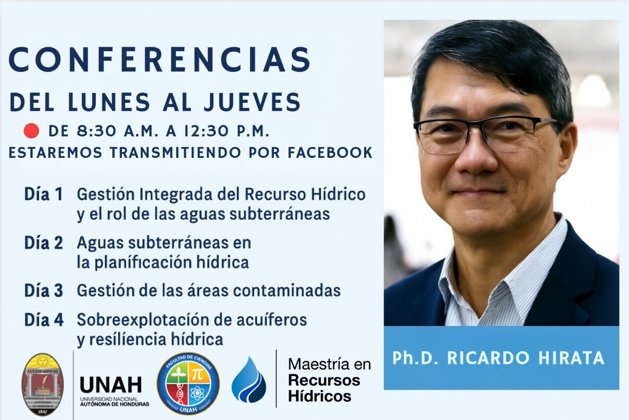 La Facultad de Ciencias - UNAH, a través de la Maestría en Recursos Hídricos, te invita a vivir en tiempo real una semana de clases magistrales imperdibles, con uno de los mayores referentes en hidrogeología aplicada de América Latina: