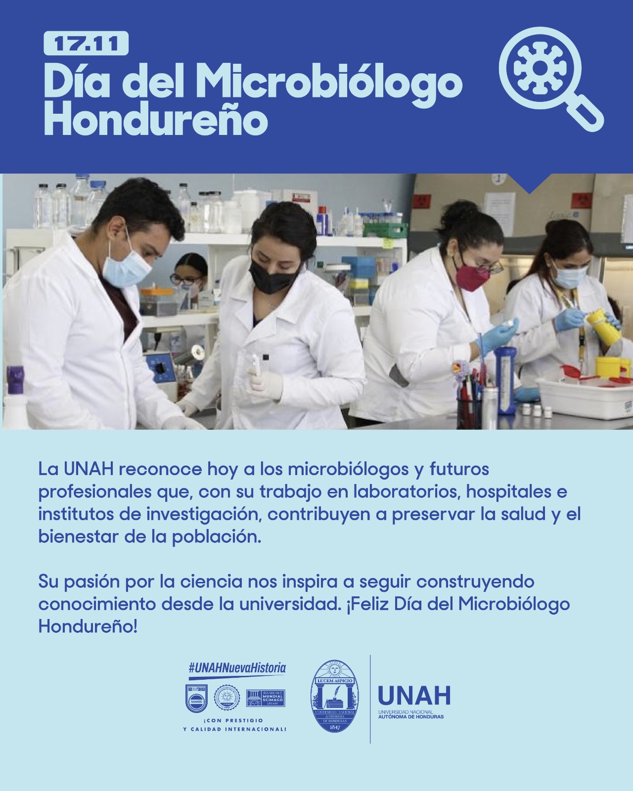 La Facultad de Ciencias felicita con orgullo a todas y todos los microbiólogos de Honduras, cuyo trabajo incansable aporta al cuidado de la salud, la investigación y el desarrollo científico del país.