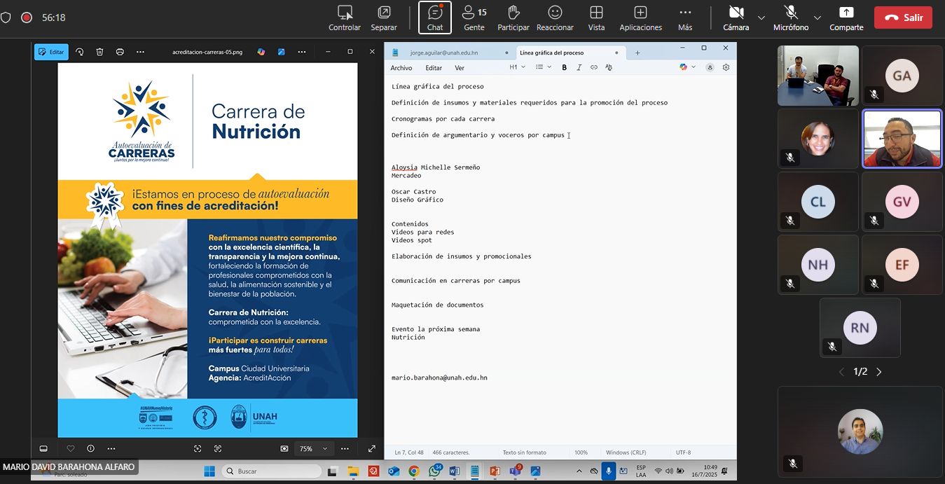 En el marco del Proceso de Autoevaluación y Acreditación de la UNAH, se desarrolló una reunión de trabajo entre representantes de las carreras que actualmente se encuentran en este proceso y el equipo de la Dirección de Comunicación de la UNAH.