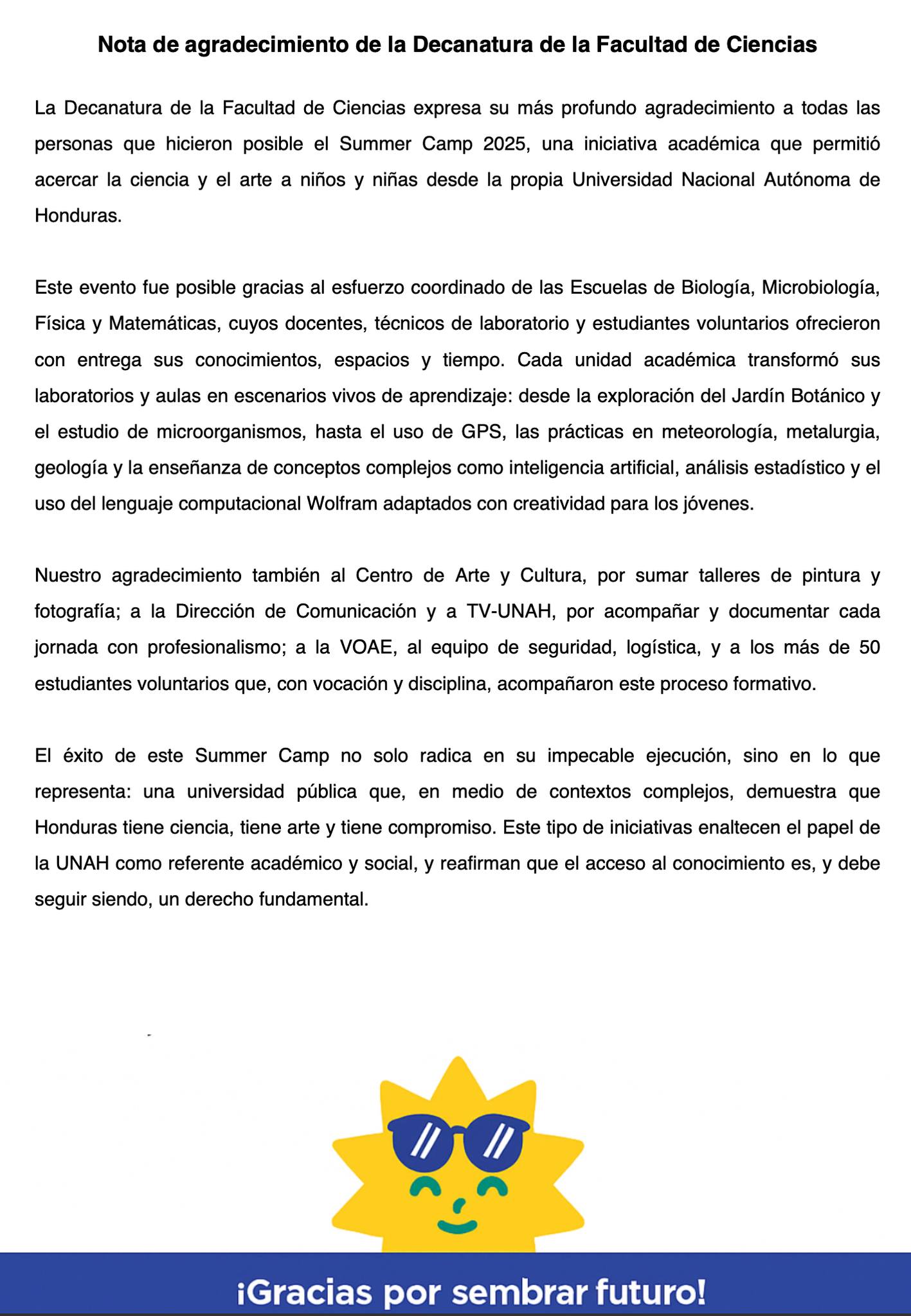 La Decanatura de la Facultad de Ciencias expresa su más profundo agradecimiento a todas las personas, unidades académicas, voluntarios y equipos de apoyo que hicieron realidad esta experiencia única que acercó la ciencia