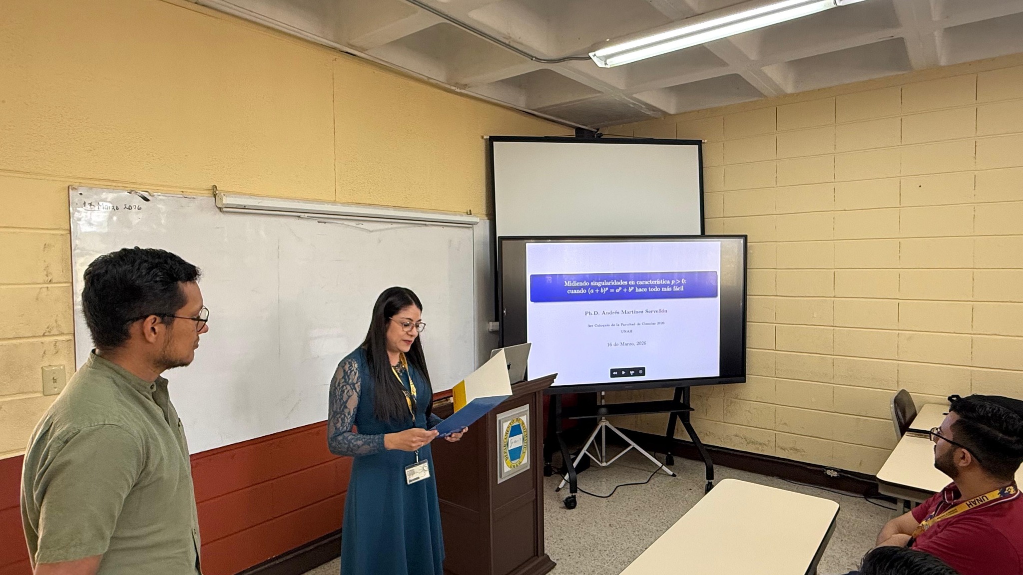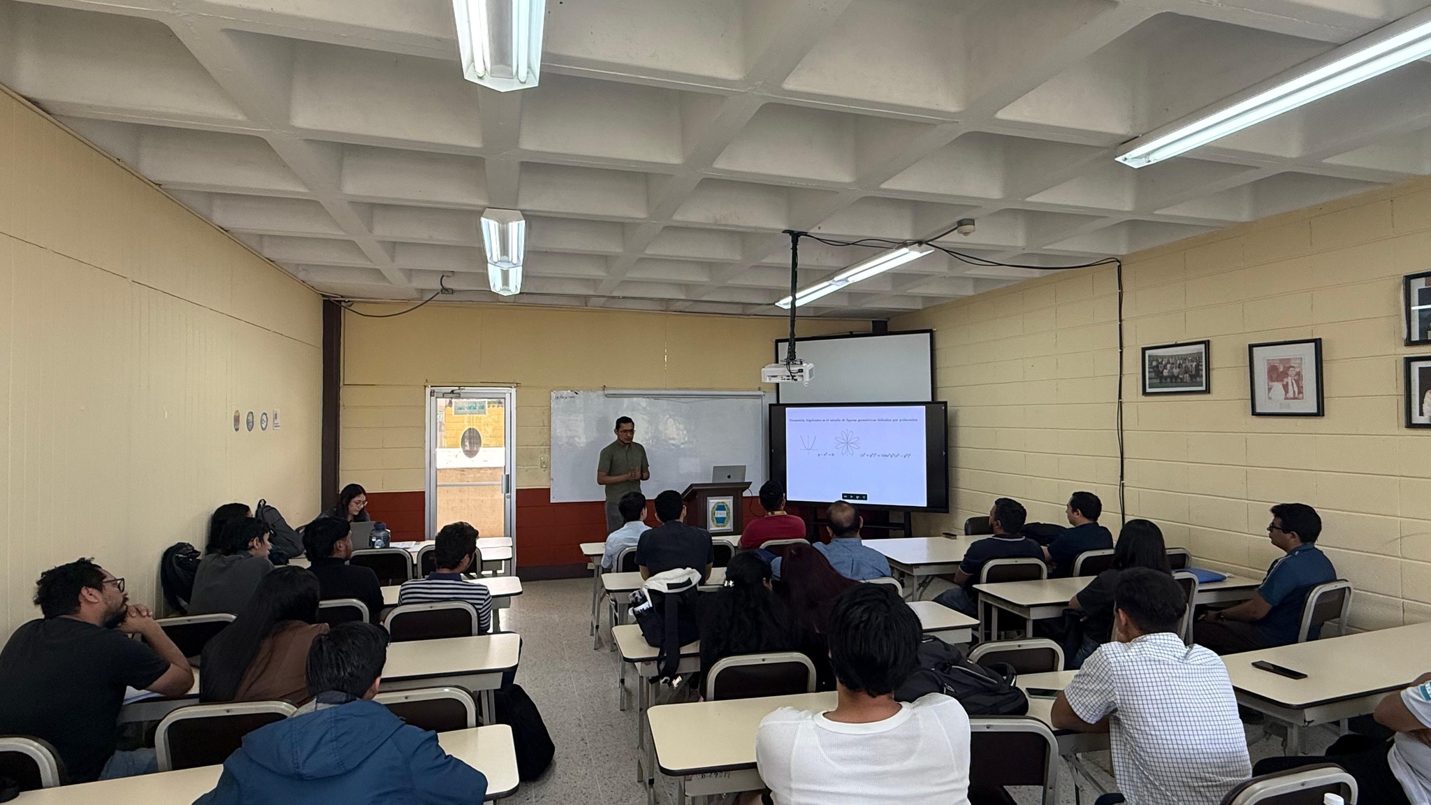 La charla estuvo a cargo del Ph. D. Andrés Martínez Servellón, quien nos llevó a explorar la belleza de la geometría algebraica, un fascinante campo de las matemáticas que estudia figuras geométricas descritas por polinomios (variedades algebraicas), aplicables en ciencia, ingeniería y matemáticas.