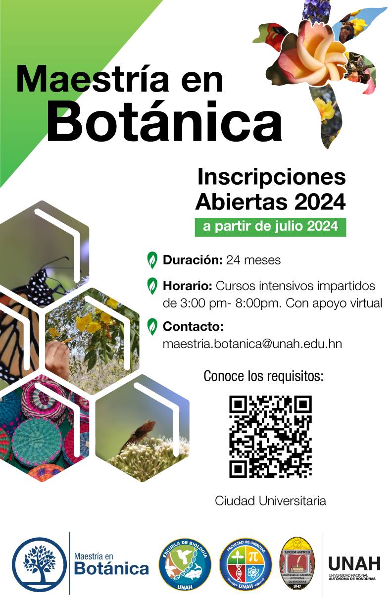 Especialízate y da un gran paso en tu carrera. Para obtener más detalles y conocer los requisitos, escanea el código QR del afiche o visita nuestra página web: https://biologia.unah.edu.hn/postgr.../maestria-en-botanica/