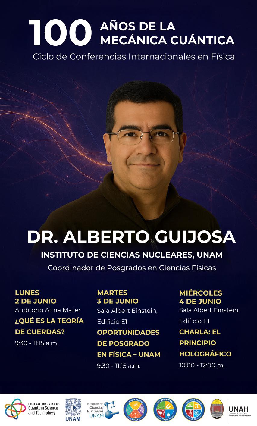 El Dr. Guijosa compartirá con la comunidad académica y científica su experiencia en temas de frontera en la física teórica y las oportunidades académicas en la UNAM.