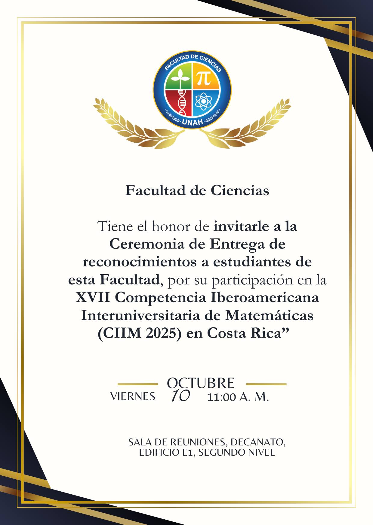 a los estudiantes de nuestra Facultad que destacaron por su brillante participación en la XVII Competencia Iberoamericana Interuniversitaria de Matemáticas (CIIM 2025), realizada en Costa Rica.