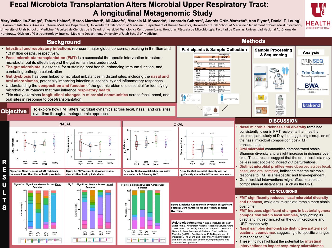 Trasplante de Microbiota Fecal y su Impacto en el Microbioma del Tracto Respiratorio Superior: Un Estudio Metagenómico Longitudinal) fue presentado en este importante evento internacional, donde participaron representantes de Honduras