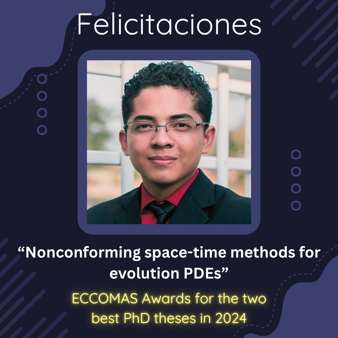 La Escuela de Matemáticas y Ciencias de la Computación de la Facultad de Ciencias felicita al Dr. Sergio Gómez Macías por haber sido galardonado con uno de los ECCOMAS Awards 2024, que reconocen las dos mejores tesis doctorales en Europa en el área de métodos computacionales en ciencia aplicada.