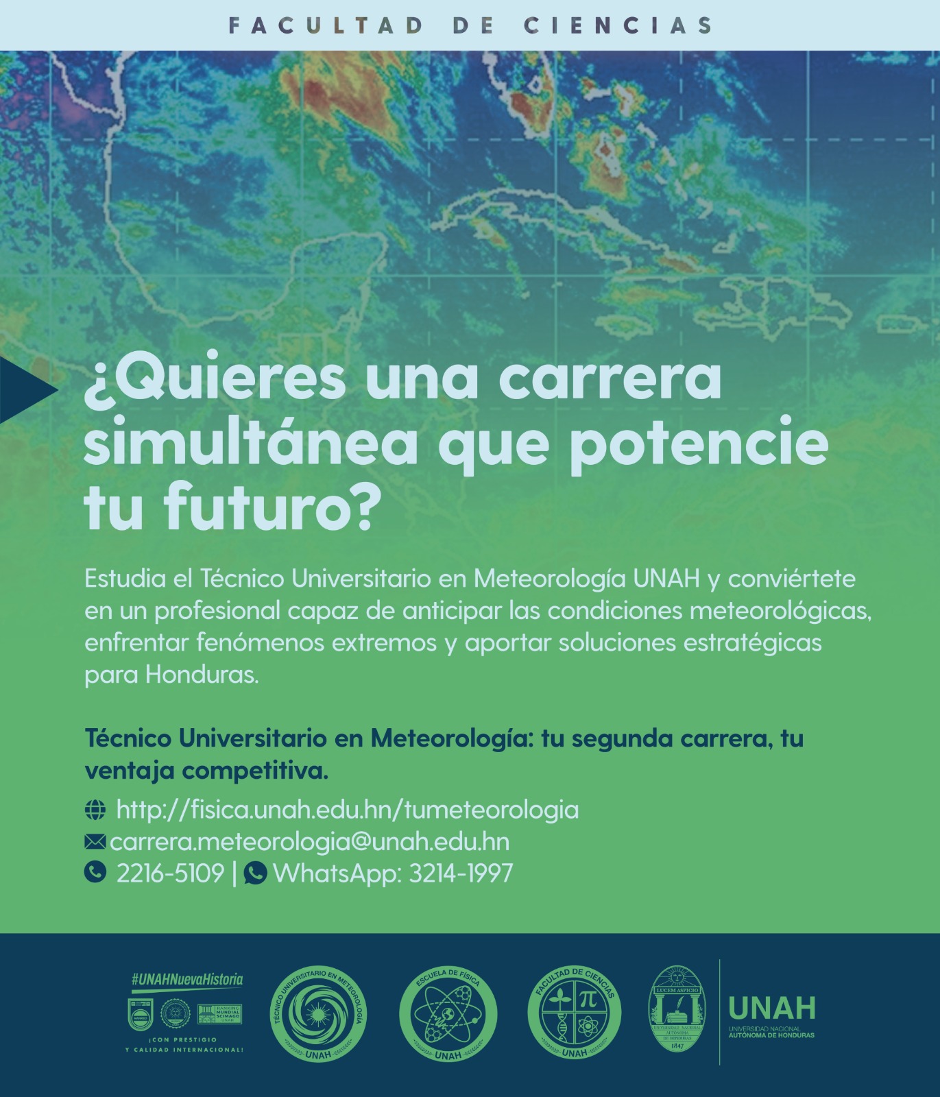 Con el Técnico Universitario en Meteorología-UNAH de la Facultad de Ciencias, puedes fortalecer tu carrera principal con conocimientos estratégicos que hoy son clave para el desarrollo del país.