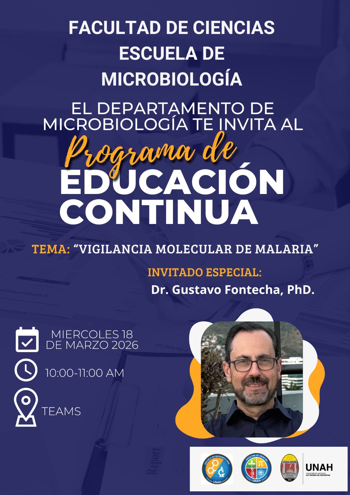 La Facultad de Ciencias, por medio de la Escuela de Microbiología - UNAH y el Departamento de Microbiología, le invita a participar en la charla de educación continua: