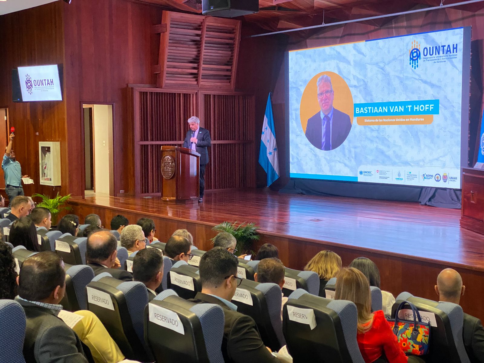 Así mismo el Doctor Odir Aarón Fernández Flores, Rector de la UNAH, cerró la ceremonia subrayando el compromiso de la universidad con la transparencia y la lucha anticorrupción, anunciando que el OUNTAH será una instancia pionera en el país.