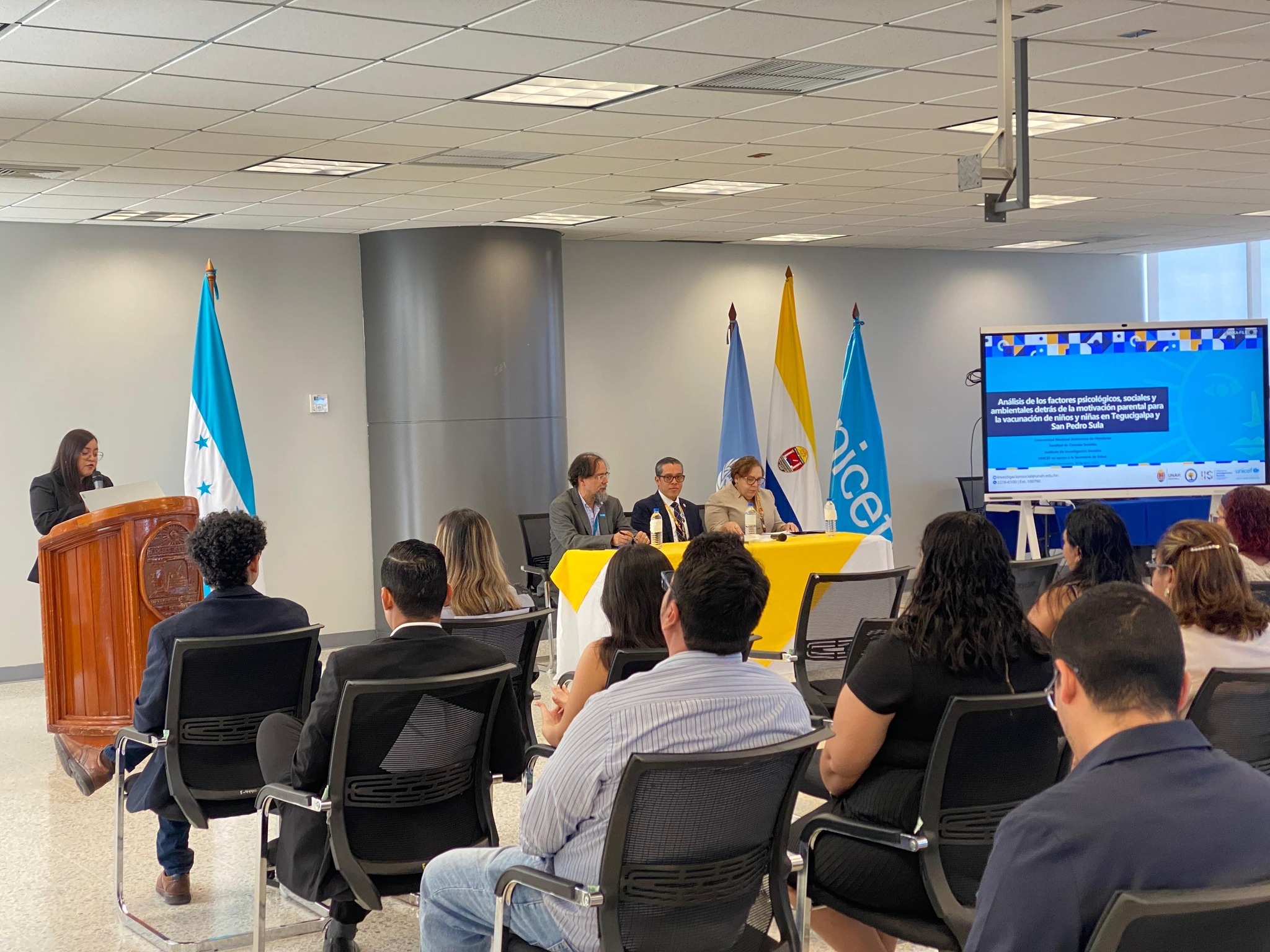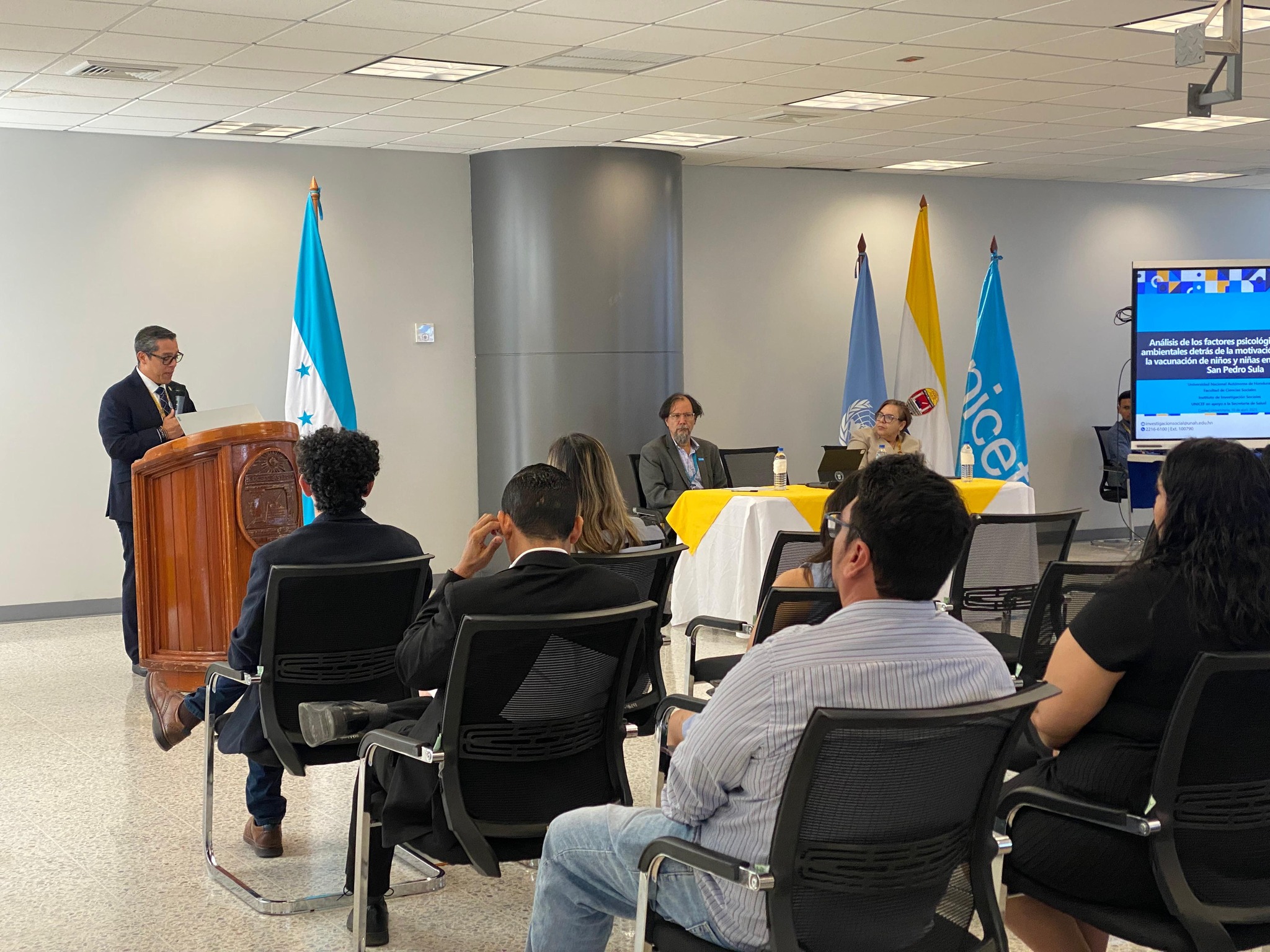 La Facultad de Ciencias Sociales de la Universidad Nacional Autónoma de Honduras (UNAH), a través del Instituto de Investigaciones Sociales (IIS), en coordinación con el Fondo de las Naciones Unidas para la Infancia (UNICEF) En apoyo al Programa Ampliado de Inmunización de la Secretaría De Salud, presentaron este jueves 10 de abril de 2025 el estudio titulado “Análisis de los factores sociales, psicológicos y ambientales detrás de la motivación parental para la vacunación de niños y niñas”.