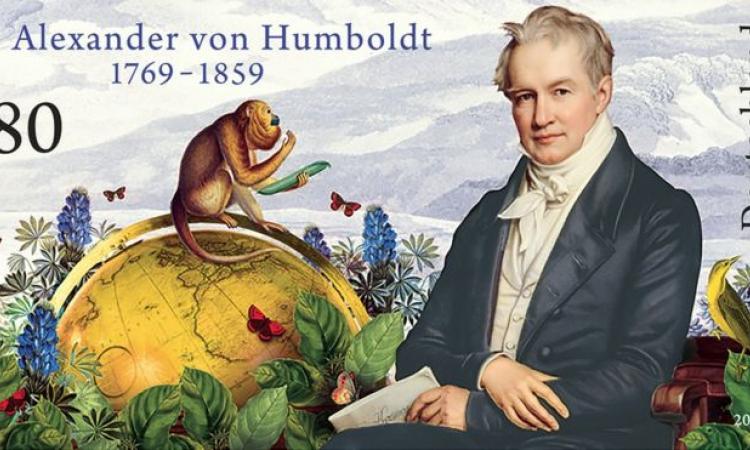 Sello postal para conmemorar el 250° aniversario del nacimiento de Alexander von Humboldt.
