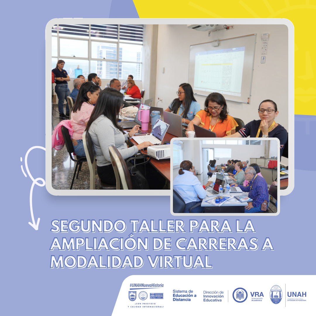 Este día se desarrolla el segundo taller del proceso de ampliación de 6 carreras a la modalidad virtual a nivel nacional en el marco del proyecto UNAH VIRTUAL.