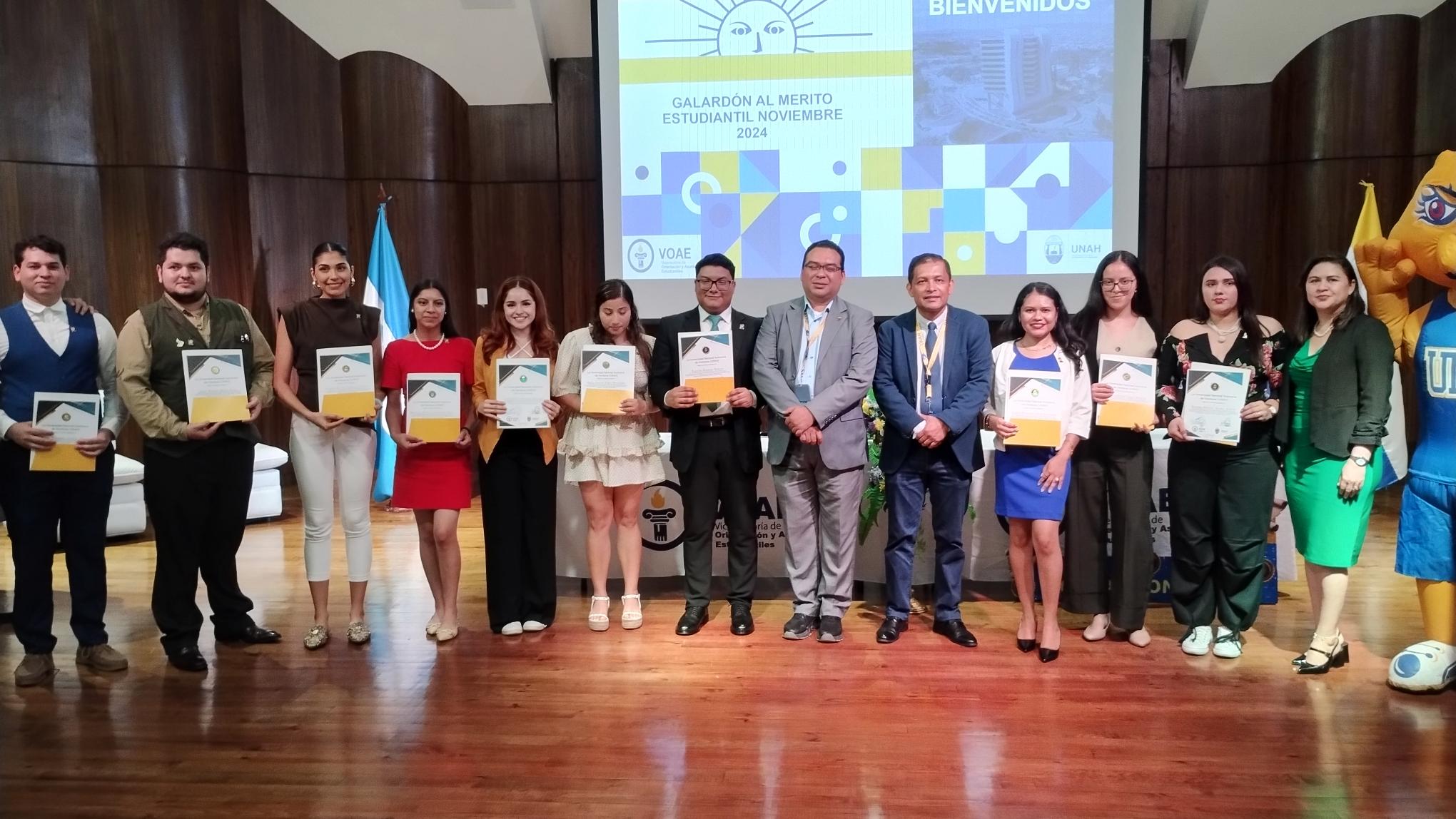 La Universidad Nacional Autónoma de Honduras (UNAH), a través de la Vicerrectoría de Orientación y Asuntos Estudiantiles (VOAE), celebró este martes la cuarta edición del Galardón al Mérito Estudiantil 2024 en el auditorio número uno del edificio C3 a las 10:00 a.m. Este evento reconoció la excelencia académica y el compromiso de 16 estudiantes destacados de diversos programas de becas y actividades extracurriculares.