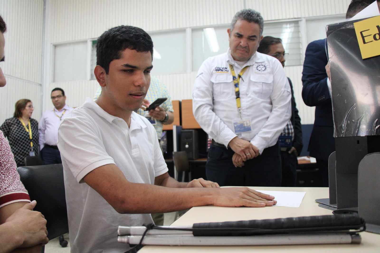 De igual manera, el secretario general, Alexander Ávila, y el vicerrector de Orientación y Asuntos Estudiantiles (VOAE), Mario Contreras, estuvieron presentes en el momento en que el estudiante Tito Gabriel Valle Morazán dio lectura al primer título escrito en Braille que se imprime dentro de la UNAH.