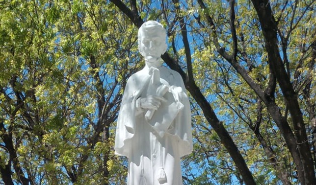 Escultura completa y detalle de José Cecilio del Valle ubicada en parque central de la ciudad de Choluteca, Honduras. (Fotografía por Jesús De Las Heras).