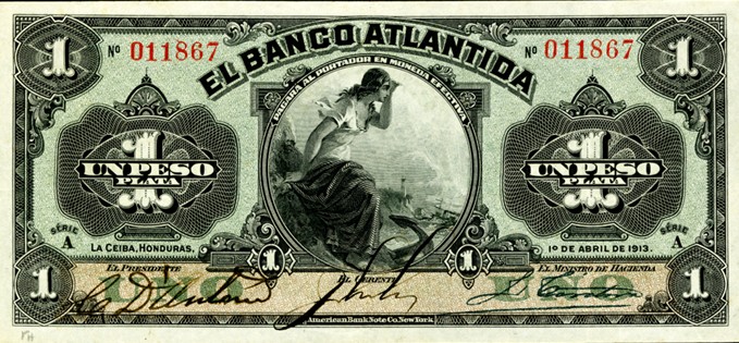 El Lempira sustituyó la moneda de curso legal en Honduras que era el peso y que había sido emitida a través del Banco Atlántida y Banco de Honduras. El ejemplar corresponde a “un peso plata” del año 1913.