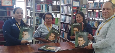 Profesora Yoconda Colindres al momento de recibir en la Dirección de Cultura ejemplares destinados al Sistema Bibliotecario del Campus Olancho.