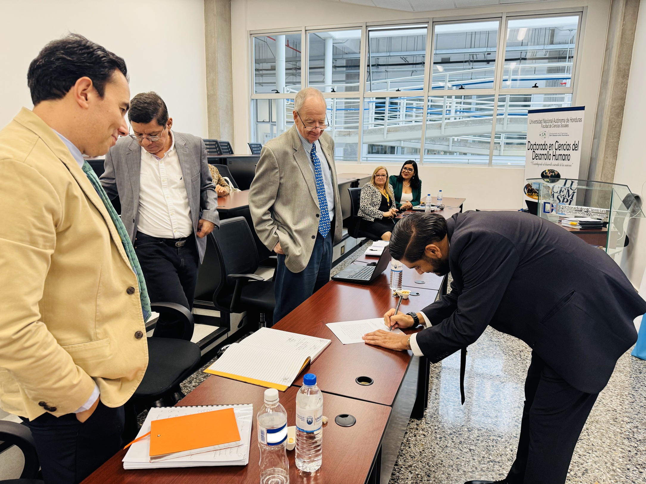 “LO PÚBLICO COMO GARANTE DE DERECHO Y DESARROLLO HUMANO”, fue el tema de investigación presentado por el estudiante de la I Promoción del Doctorado en Ciencias del Desarrollo Humano, Leonardo Euceda Amaya, durante su defensa de tesis el pasado 19 de mayo.