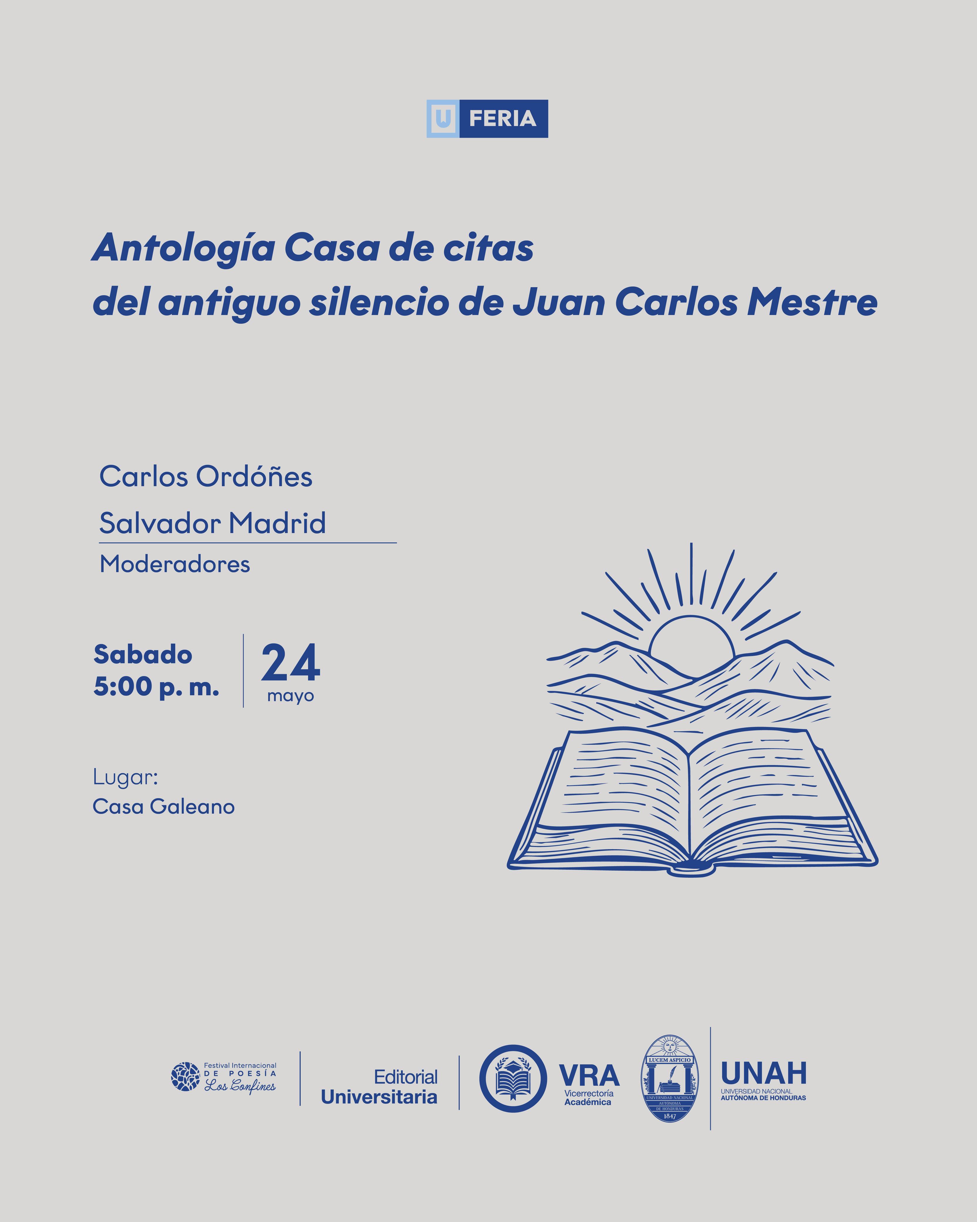 - La moderación de la presentación de la antología Casa de citas del antiguo silencio, del poeta español Juan Carlos Mestre, a cargo de Carlos Ordóñez y Salvador Madrid.