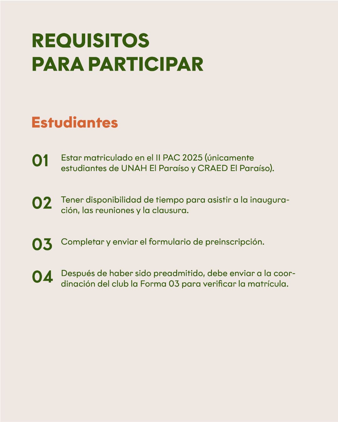 Nota: el cupo es limitado, por ese motivo, antes de realizar la preinscripción las personas interesadas deber leer los lineamientos necesarios. El hecho de enviar la preinscripción no garantizará un cupo, ya que todo pasará por un proceso de selección.