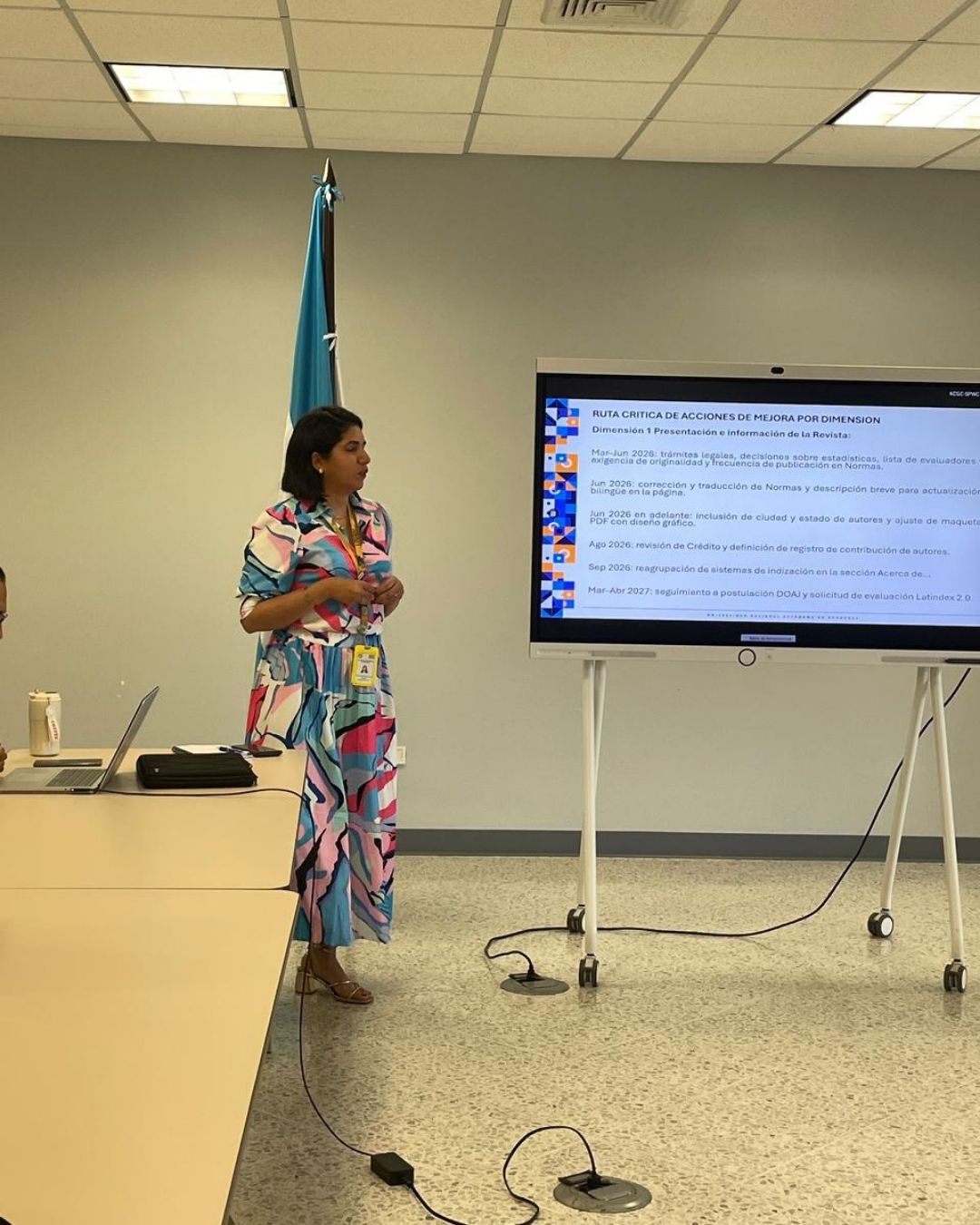 El máster Carlos Aguilar presentó los resultados del diagnóstico institucional desarrollado durante el año. Según Aguilar, los datos muestran que las revistas cumplen el 50 % de los criterios de indexación de siete bases de datos; se cumplen parcialmente el 8 % y el 42 % de los criterios no se cumplen. Este diagnóstico permitió identificar avances, rezagos y necesidades específicas, constituyendo de esta manera la base para el diseño de una ruta crítica orientada a elevar la calidad editorial de cara a estándares y sistemas de indexación nacionales e internacionales.