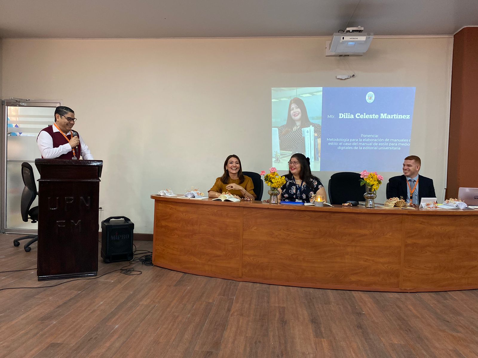 Tegucigalpa, 19 de noviembre de 2025. En el marco del espacio formativo Seminario del Español de Honduras, la Vicerrectoría Académica y el Departamento de Letras de la Universidad Pedagógica Nacional Francisco Morazán (UPNFM) invitaron a la máster Dilia Celeste Martínez, jefa de edición de la Editorial Universitaria, a impartir una ponencia. La actividad se llevó a cabo en el Salón de Usos Múltiples de la UPNFM, donde la invitada presentó su ponencia «Criterios para la elaboración de manuales de estilo: el caso del Manual de estilo para medios digitales de la Editorial Universitaria».