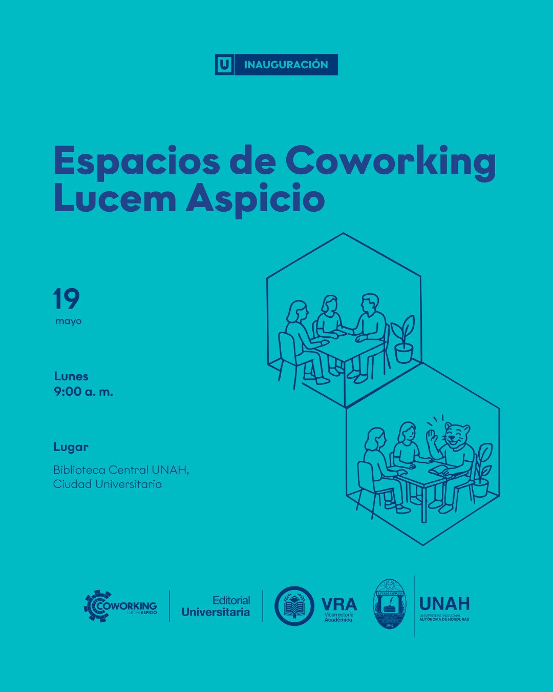 Invitamos a toda la comunidad universitaria a conocer y participar de las actividades de inauguración en los Espacios Coworking Lucem Aspicio, compartir esta experiencia y hacer de este nuevo entorno un punto de encuentro para la creatividad, el conocimiento, la colaboración y la creación de #UNAHNuevaHistoria.