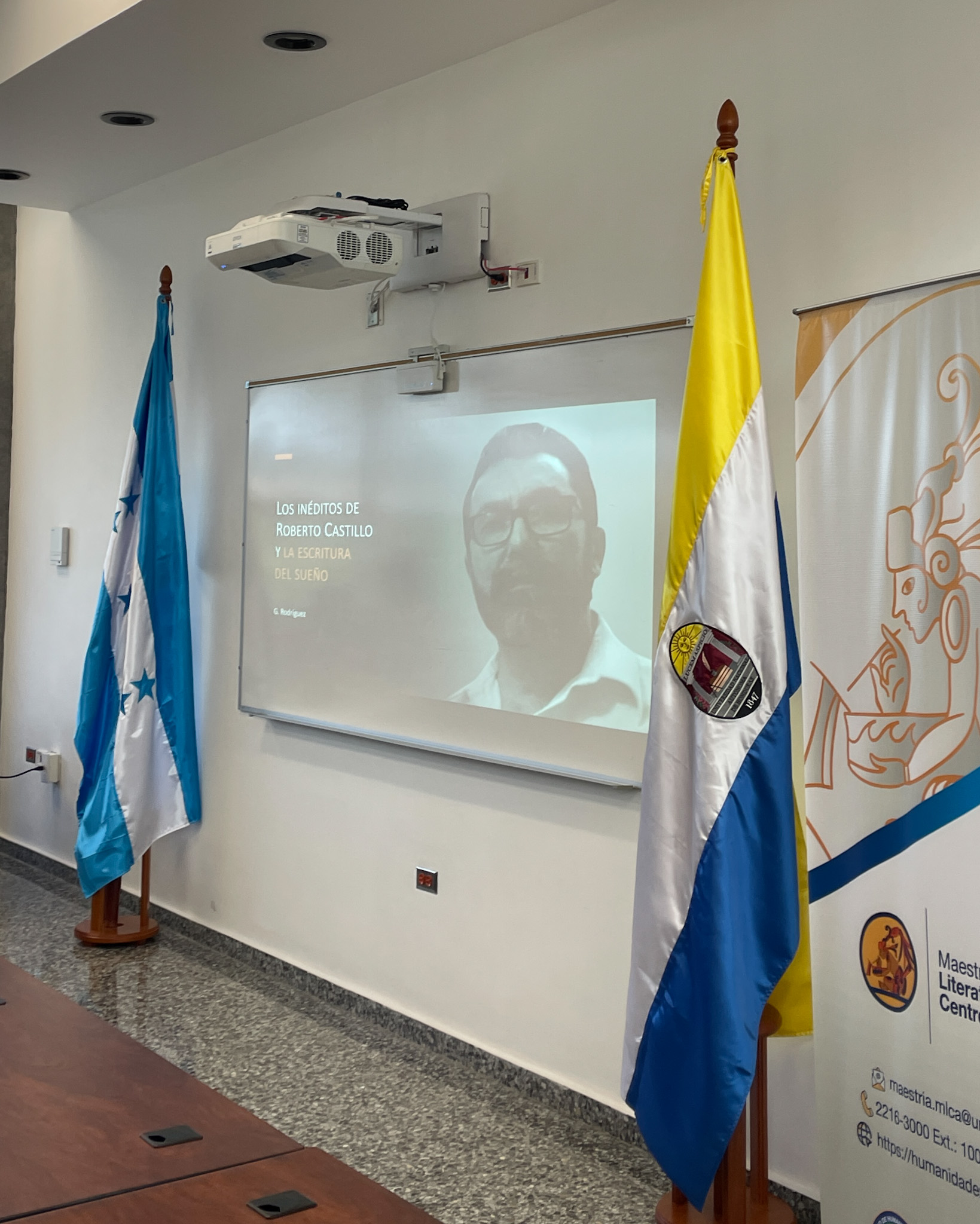 Tegucigalpa, 24 de julio de 2025. En una jornada cargada de emoción y hallazgos literarios, el escritor y académico Giovanni Rodríguez compartió los hallazgos más recientes de su investigación sobre el archivo inédito de Roberto Castillo, uno de los autores fundamentales de la narrativa hondureña. La conferencia «Los inéditos de Roberto Castillo y la escritura del sueño» se llevó a cabo el miércoles 23 de julio a las 2:00 p. m. en el Aula 403, del Edificio 1847, como parte de las actividades impulsadas por la Vicerrectoría Académica, a través de la Editorial Universitaria, en el marco del Año Académico 2025 José Dionisio de Herrera.