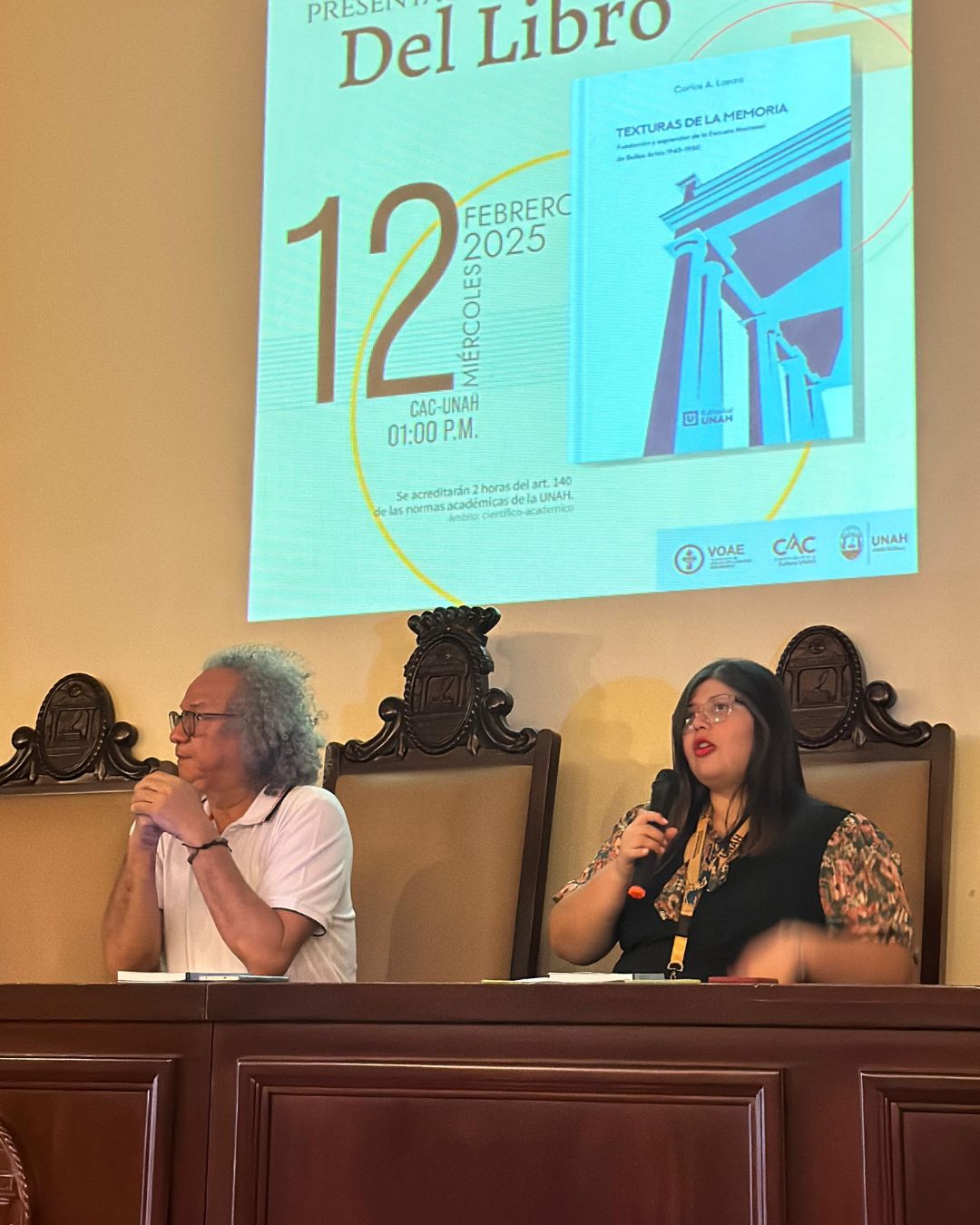 El evento se llevó a cabo en el Centro de Arte y Cultura (CAC-UNAH), donde Dilia Martínez, editora jefa de la Editorial UNAH, fue la encargada de presentar al autor y destacar la importancia de nuestra publicación. La obra rescata la historia y el impacto que la Escuela Nacional de Bellas Artes ha tenido en la transformación cultural y artística del país, consolidándose como un referente de identidad y ciudadanía a través del arte.