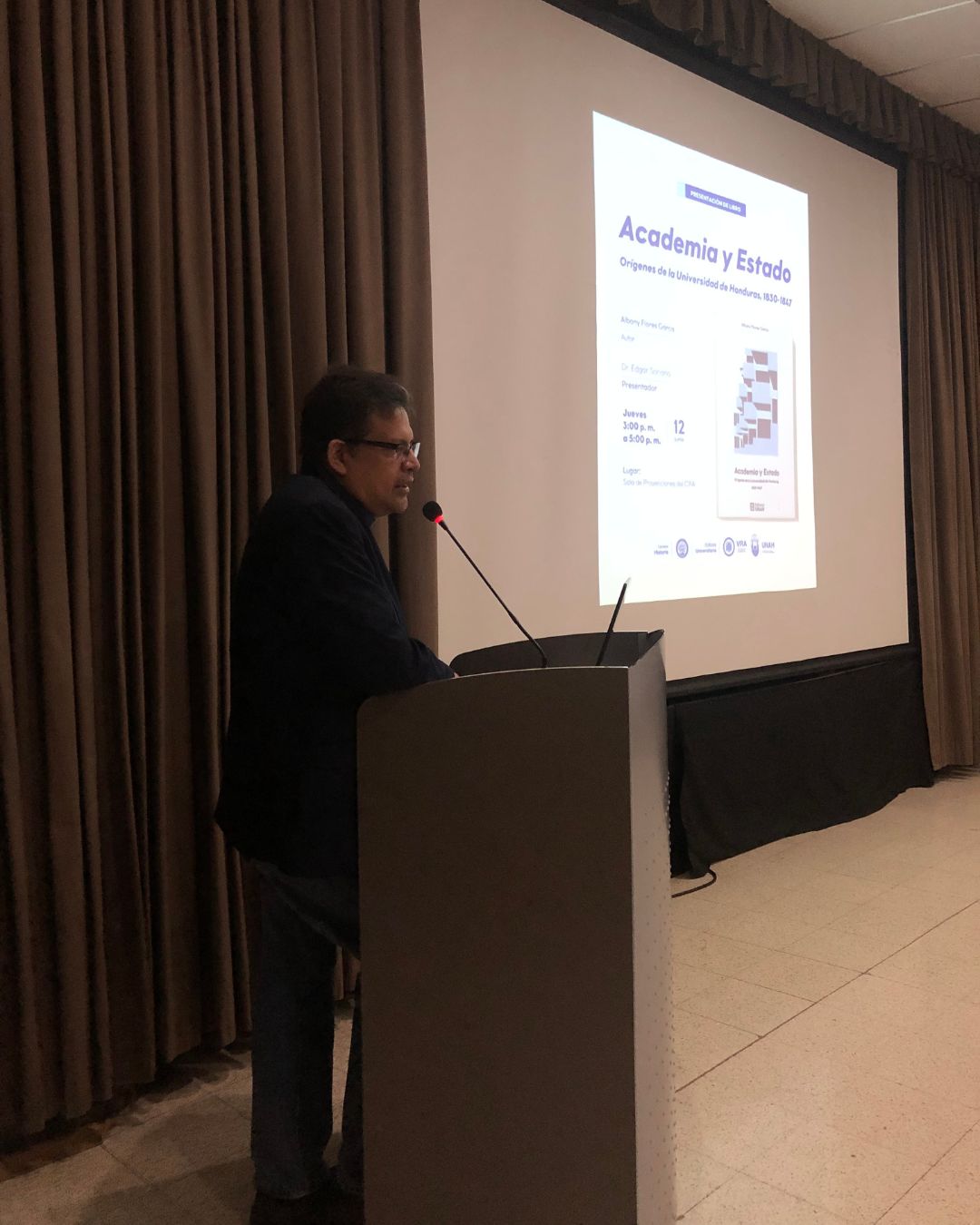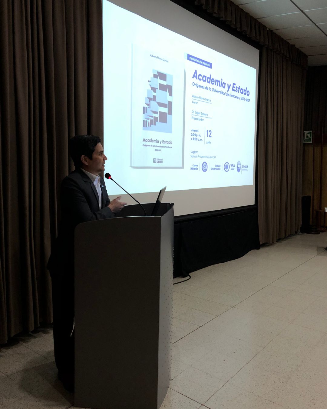 Tegucigalpa, 13 junio de 2025. Como parte de las actividades emblemáticas del Año Académico 2025 José Dionisio de Herrera, la Vicerrectoría Académica, a través de la Editorial Universitaria y en colaboración con la Carrera de Historia, presentó el libro Academia y Estado. Orígenes historia de la Universidad de Honduras (1830-1847), del escritor e historiador Albany Flores. La actividad, realizada en la Sala de Proyecciones del CRA UNAH, reunió a docentes, investigadores y estudiantes en un espacio de diálogo sobre el papel de la educación superior en la formación del Estado hondureño.