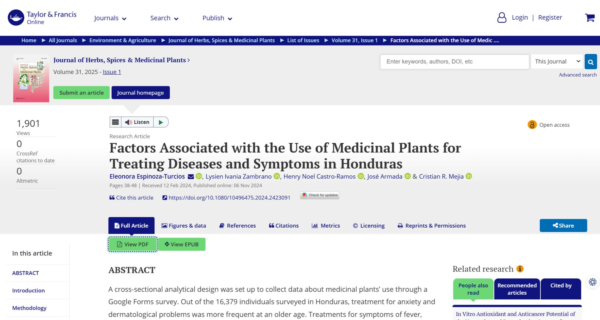 Un estudio publicado en la revista Journal of Herbs, Spices & Medicinal Plants reveló que miles de hondureños recurren al uso de plantas medicinales como alternativa para tratar enfermedades y síntomas comunes, principalmente por factores económicos y la limitada accesibilidad a los servicios de salud.