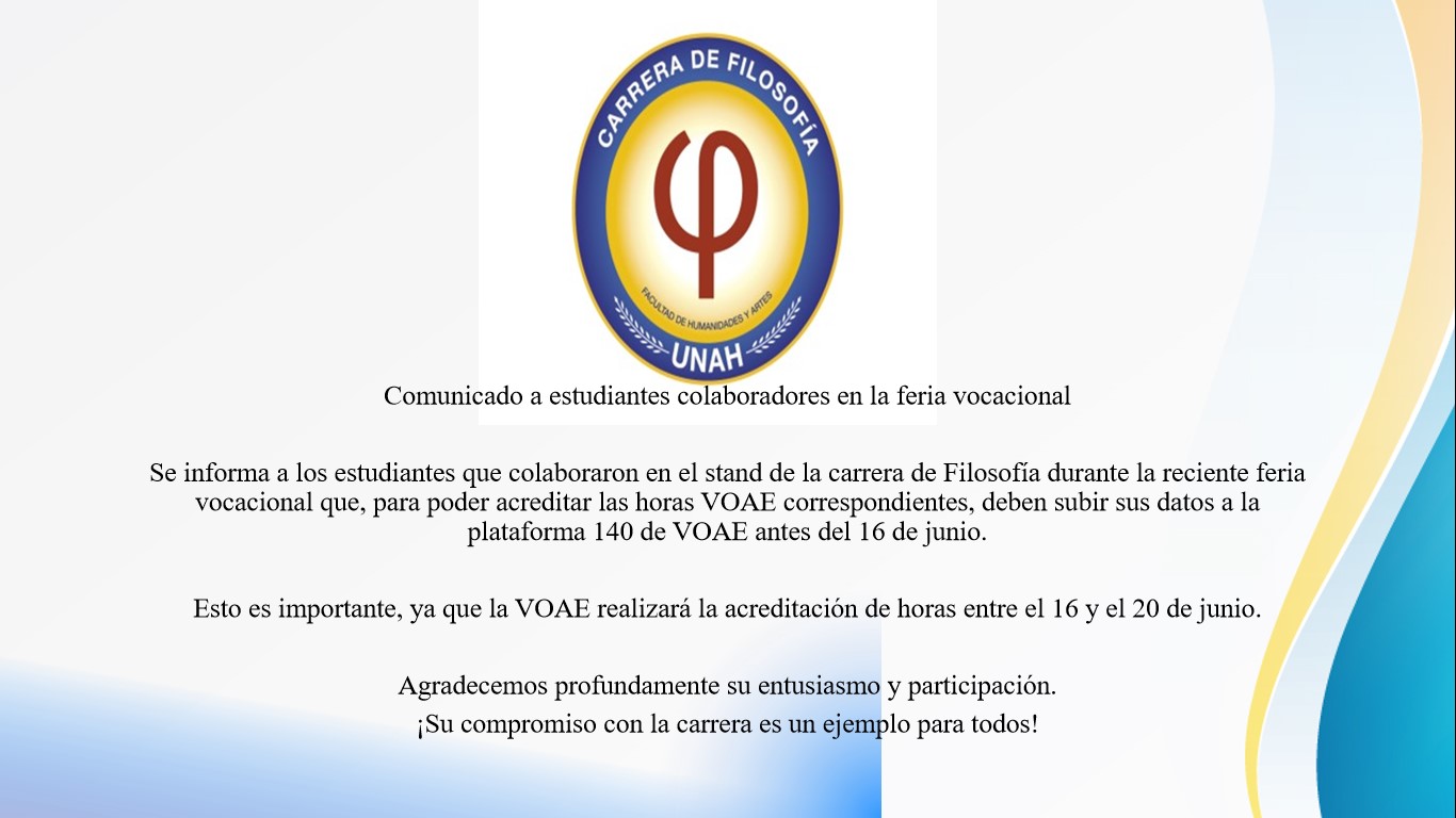 Comunicado a estudiantes; colaboradores en la feria vocacional.