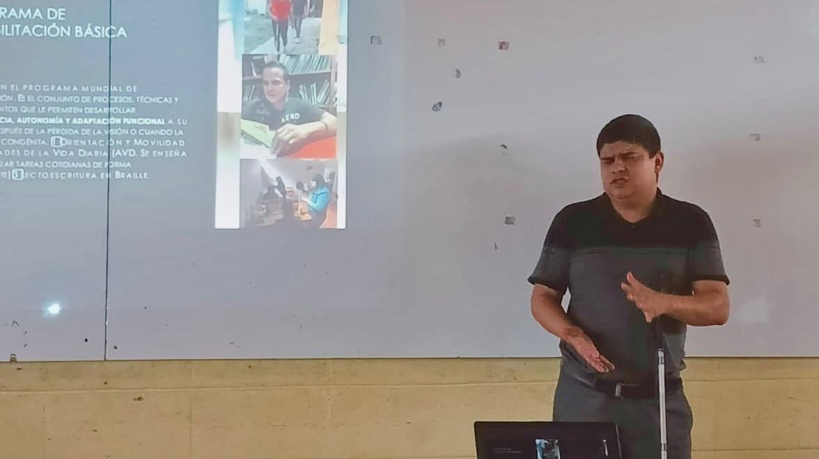 La charla fue impartida por el instructor Olvin Milla, quien compartió conocimientos valiosos sobre la importancia de la inclusión y el desarrollo de habilidades en personas con discapacidad visual.