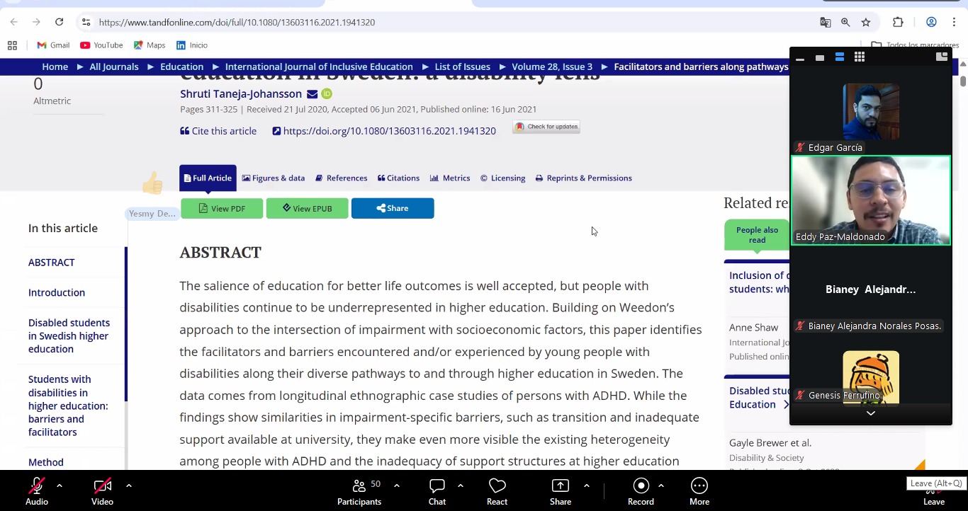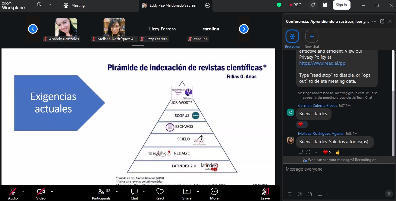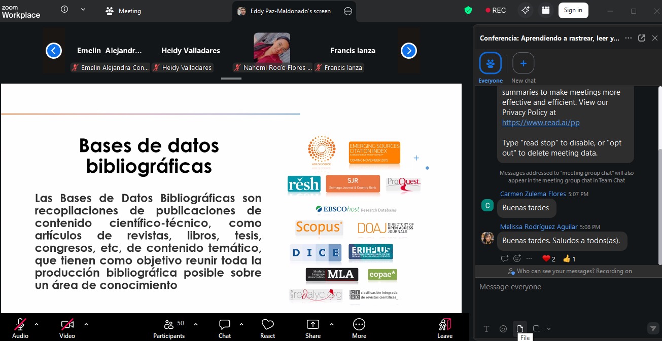 Dicho evento reunió a estudiantes y docentes interesados en profundizar sus conocimientos en los procesos de investigación aplicados al campo educativo, mediante la capacitación: “Aprendiendo a rastrear, leer y comprender artículos científicos para fortalecer tu proceso de investigación” abordando temas clave como: La búsqueda en gestores bibliográficos académicos, la lectura de artículos científicos, rastreo de artículos científicos y algunos consejos para la interpretación de estos, asimismo, consejos sobre el uso de herramientas tecnológicas para la búsqueda de información. Durante la actividad, se presentaron ejemplos prácticos que permitieron a los participantes comprender la importancia de la evidencia científica en la toma de decisiones,