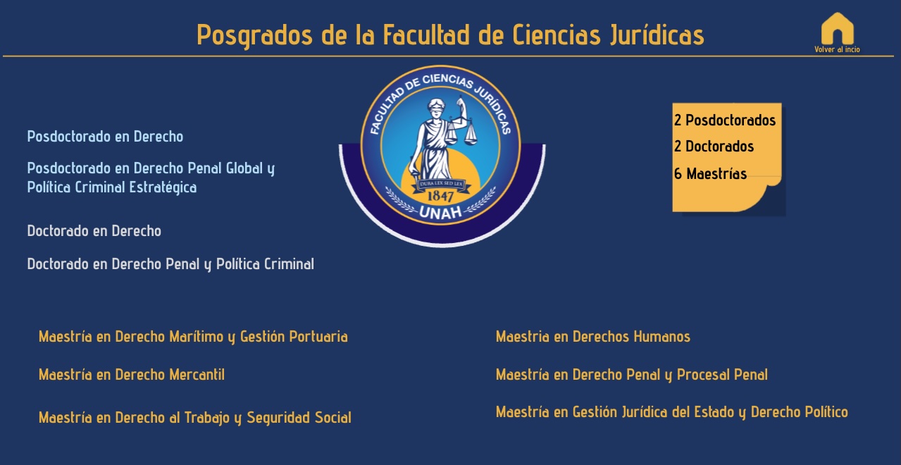 Para consultas sobre los programas de posgrado de la Facultad de Ciencias Jurídicas, los interesados pueden comunicarse al correo institucional cgposgrados.fcj@unah.edu.hn.