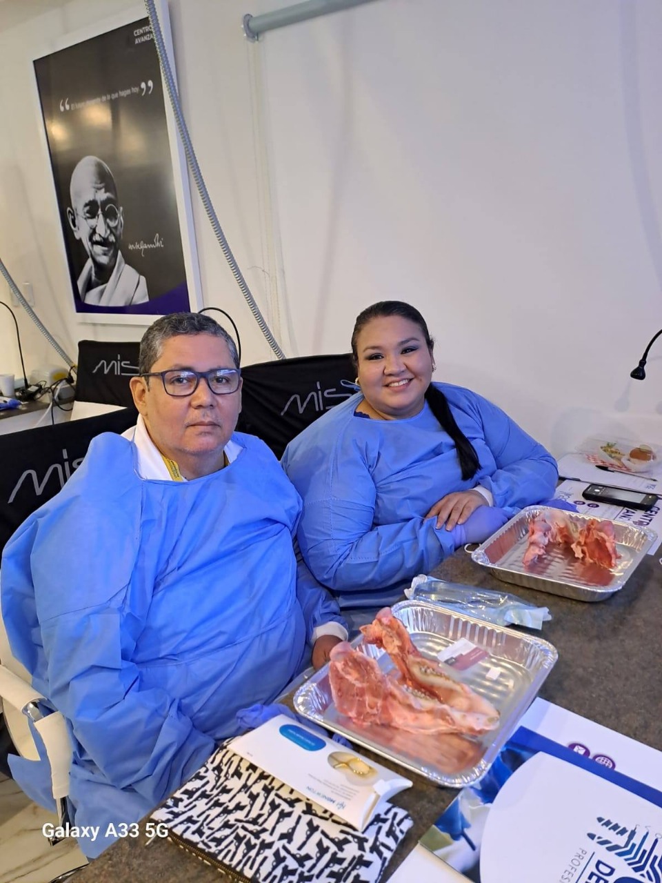 La primera actividad fue el taller presencial titulado “Suturas, Colgajos y ROG – Manejo de Periodontitis y Periimplantitis”, llevado a cabo el sábado 12 de julio de 2025 en el Centro de Capacitación CCIRO. Este espacio formativo fue facilitado por los especialistas Dr. Gerardo Ferrera (Periodoncia e Implantología) y Dr. Grevil Pineda (Rehabilitación Oral e Implantología), quienes compartieron conocimientos teóricos y dirigieron prácticas clínicas en técnicas de incisión, sutura, manejo de colgajos y regeneración ósea guiada. El componente hands-on resultó clave para el desarrollo de habilidades quirúrgicas avanzadas entre los asistentes.