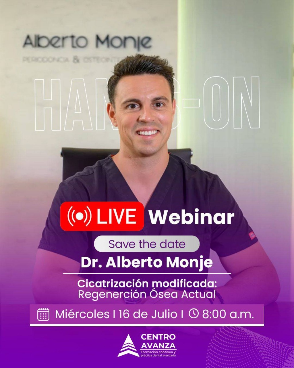 La segunda jornada se realizó el miércoles 16 de julio de 2025, con la participación destacada del Dr. Alberto Monje, reconocido especialista internacional en periodoncia y osteointegración, con sede en España. La actividad consistió en un webinar interactivo seguido de una práctica clínica (hands-on), bajo el tema “Cicatrización modificada y regeneración ósea actual”. Esta sesión tuvo lugar en el Centro Avanza y representó una oportunidad para que los estudiantes se familiarizaran con los últimos avances en regeneración ósea y técnicas quirúrgicas contemporáneas, además de servir como bienvenida académica para los nuevos residentes R2 de la especialidad.