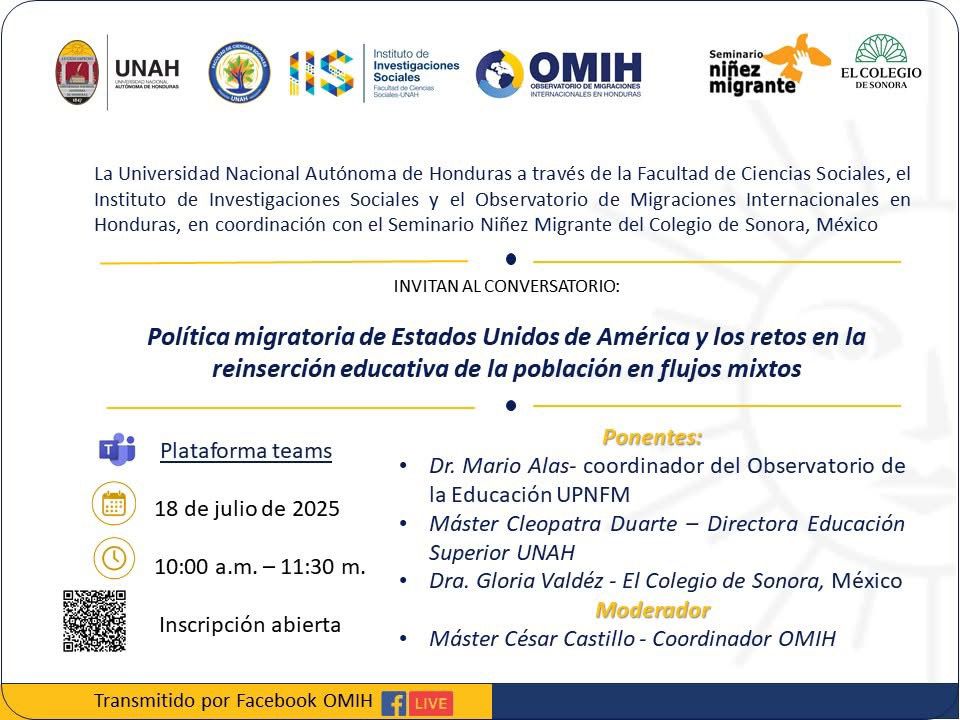 Esto se realizó a través de la Facultad de Ciencias Sociales, el Instituto de Investigaciones Sociales y el Observatorio de Migraciones Internacionales en Honduras (OMIH), en coordinación con el Seminario Niñez Migrante del Colegio de Sonora México.