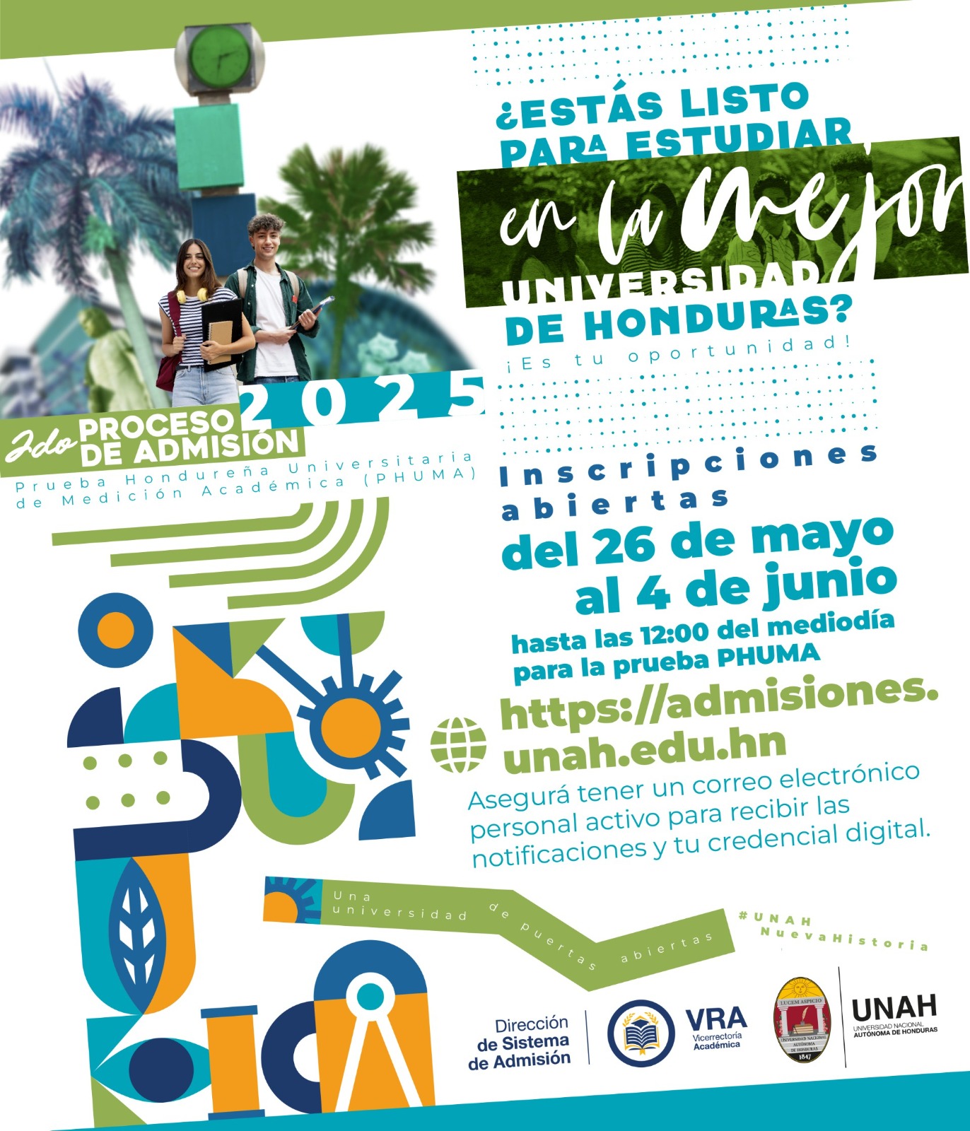 Las inscripciones para los futuros universitarios estarán habilitadas hasta el miércoles 4 de junio a las 12:00 del mediodía, en https://admisiones.unah.edu.hn/pruebas-de-admision/inscripcion-2025/, donde además está disponible el instructivo con el paso a paso.