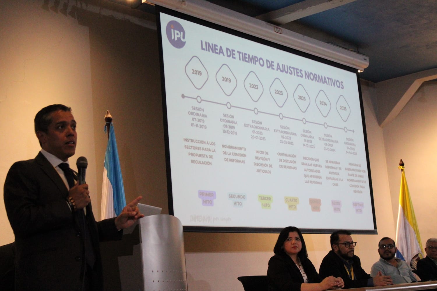 Fernández expuso un mapa conceptual donde aseguró que la reforma se realizó por el aumento de pensionados, déficit actuarial, baja liquidez, activos improductivos y eventuales, desinversión por no pago de aportes patronales, pues el Estado adeuda 443.4 millones de lempiras, creación de compromisos previsionales generados ante alertas emitidas por la Comisión Nacional de Bancos y Seguros (CNBS) y por baja tasa de dependencia.
