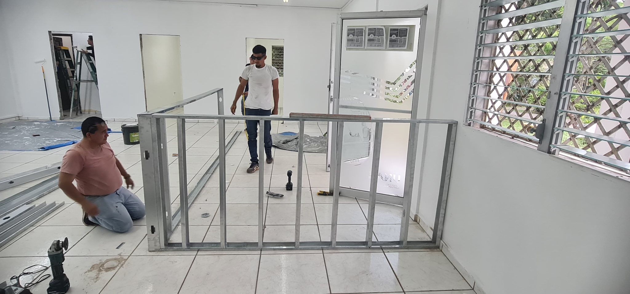 “Se están realizando trabajos de pintura, cableado eléctrico e instalación de aires acondicionados en las distintas áreas. Ya tenemos un 90% de avance en la Estancia Infantil Pumitas del Futuro, un 50% en el Comedor Universitario, y mañana se comenzará a trabajar en el espacio de Coworking”, informó Carlos Olguín, jefe de Servicios Generales de UNAH Cortés.