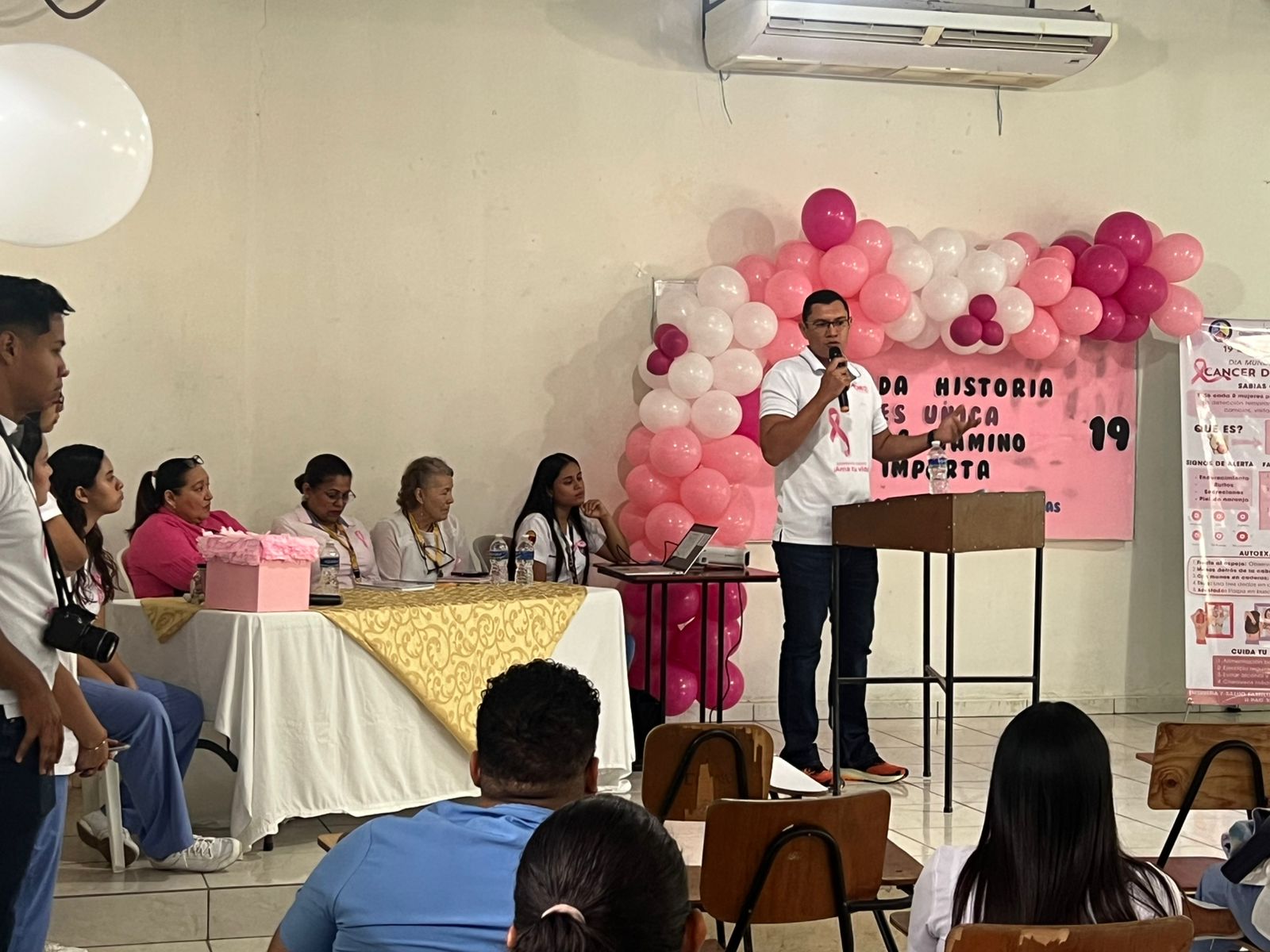 De esa manera también destacó la participación del doctor Raúl Castellanos, ginecólogo y obstetra del Hospital General San Francisco, quien ofreció una exposición clara y valiosa sobre el cáncer de mama, sus factores de riesgo y la importancia de la detección oportuna.