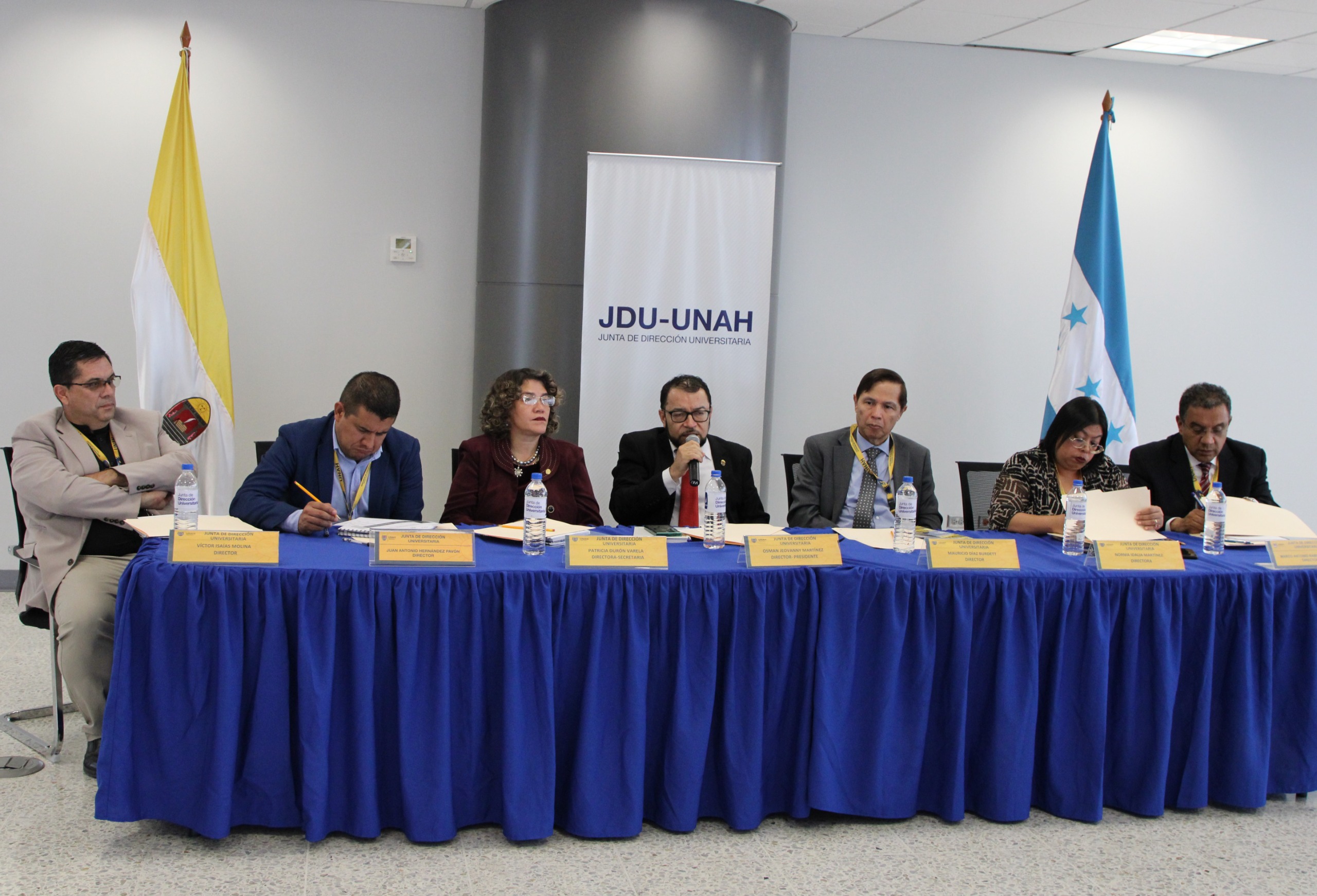 En el marco del proceso de selección, elección y nombramiento de autoridades en la Universidad Nacional Autónoma de Honduras (UNAH), los candidatos al cargo de director del Campus Copán, Reyna Patricia Vega Zaldívar y Luis Gerardo Aguirre Cálix, presentaron sus planes de trabajo ante la Junta de Dirección Universitaria (JDU).