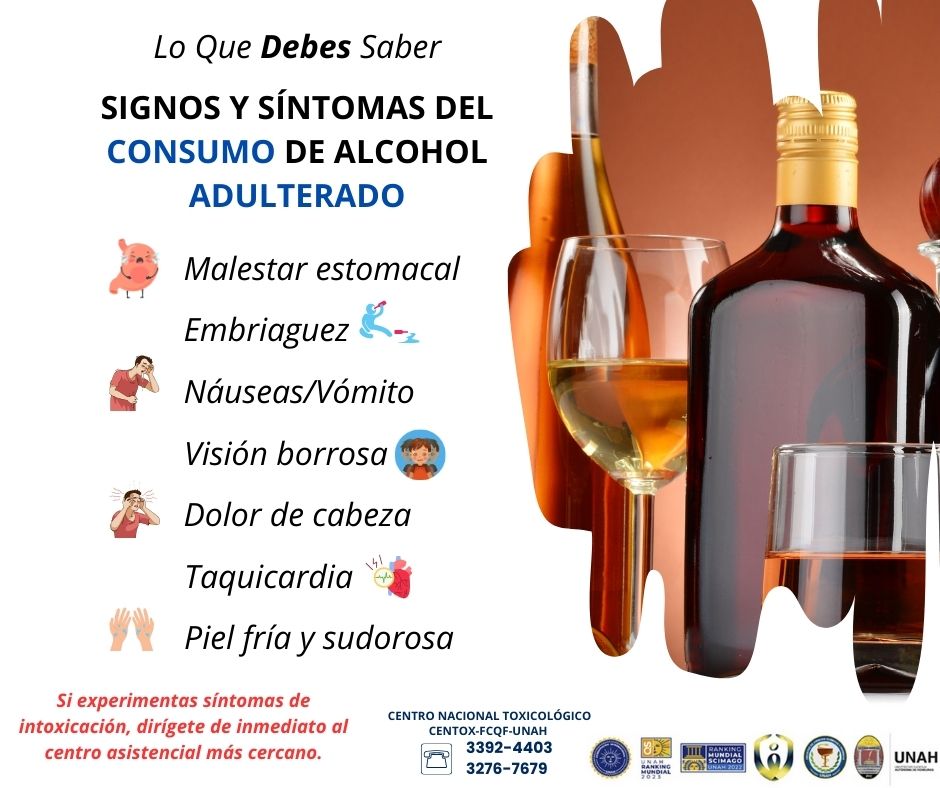 El Centro Nacional Toxicológico (Centox), adscrito a la Facultad de Ciencias Químicas y Farmacia comparte la siguiente información que te puede salvar la vida, en el caso, de que hayas consumido bebidas alcohólicas adulteradas.