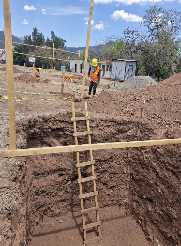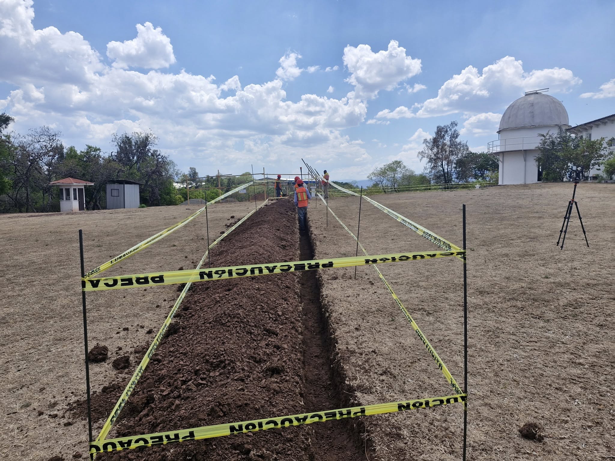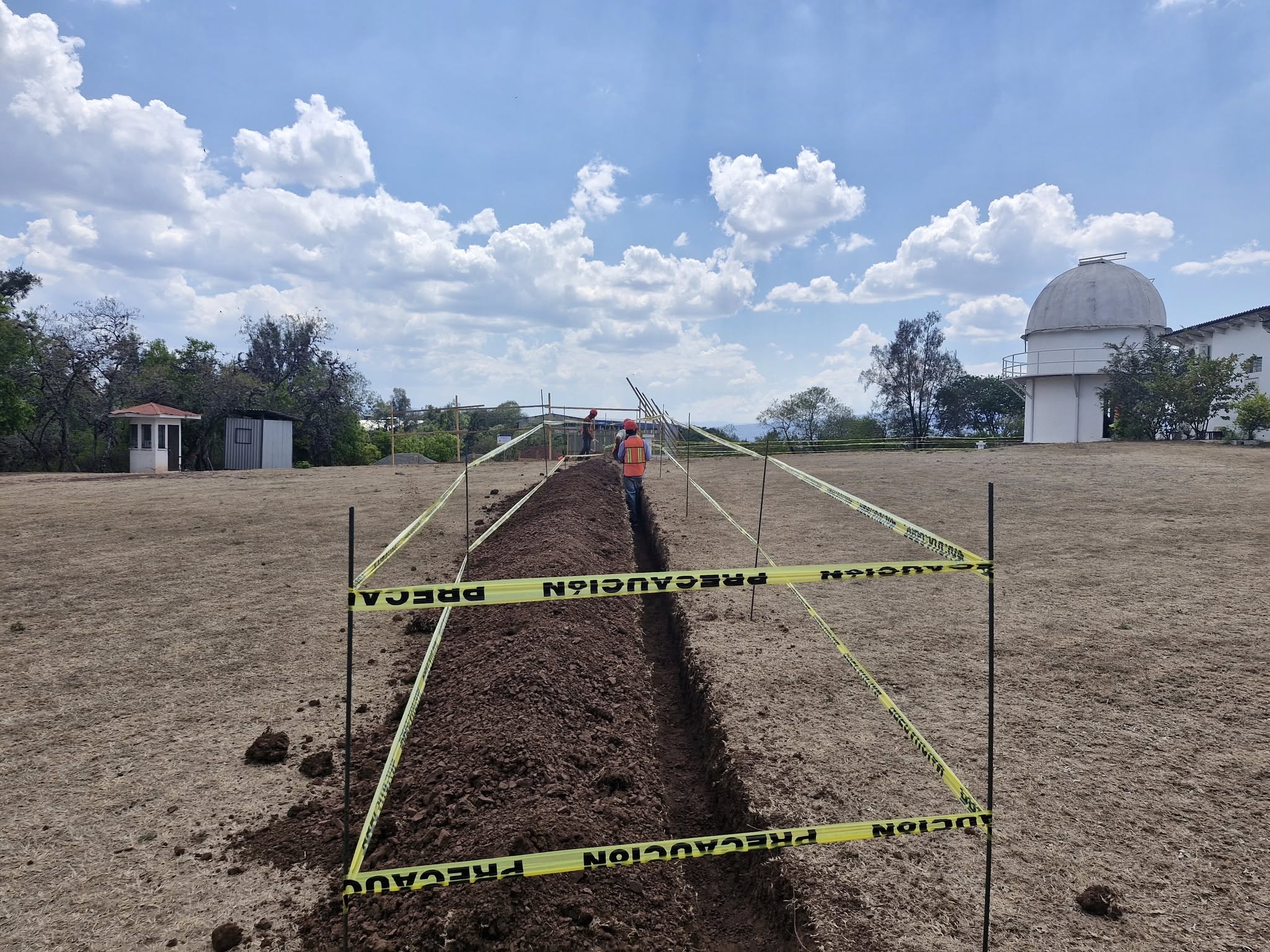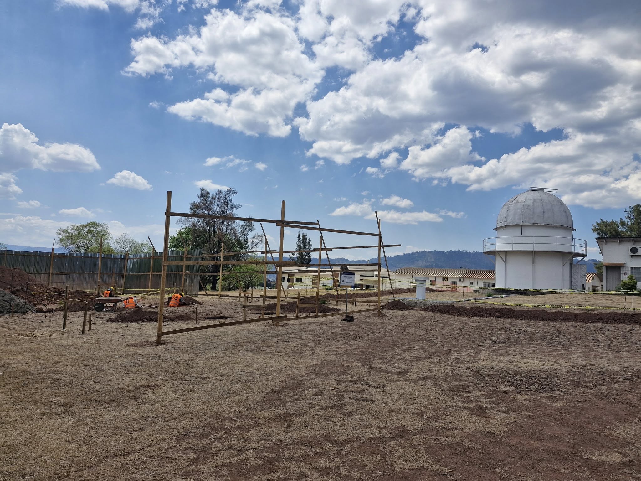 En esta oportunidad, los obreros y albañiles han cavado surcos para instalar la fibra óptica y agujeros de varios metros de profundidad en el predio de la Facultad de Ciencias Espaciales y construyen castillos de hierro para edificar la estación terrena.