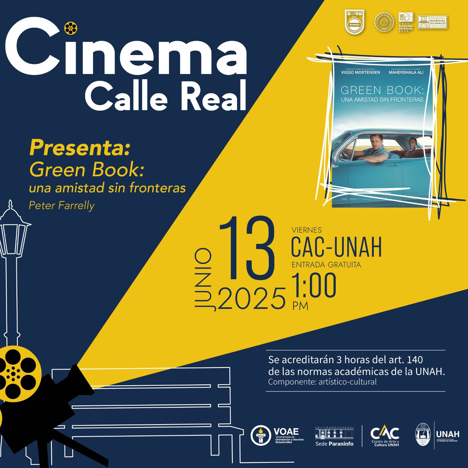 La cita es este viernes 13 de junio a la 1:00 p.m. en el CAC, para que la comunidad universitaria y el público en general puedan asistir a la proyección gratuita de Green Book: una amistad sin fronteras, película dirigida por Peter Farrelly y basada en hechos reales.