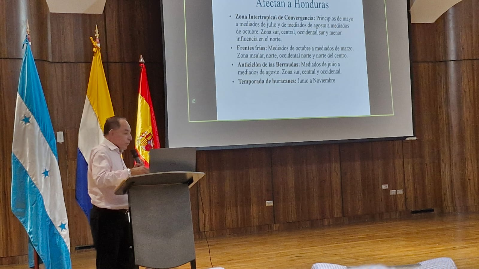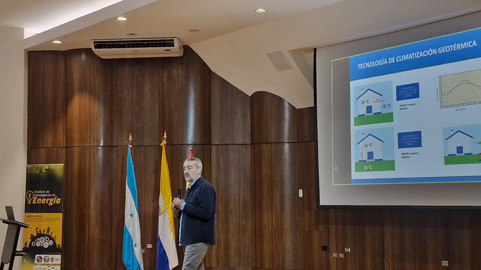 En la jornada también se presentaron investigaciones desarrolladas desde la UNAH. Marco Flores, director del Instituto de Investigación en Energía, expuso sobre las heliofanías y su importancia para generar datos sobre radiación solar, variaciones de brillo solar y correlaciones anuales con estaciones meteorológicas del país.