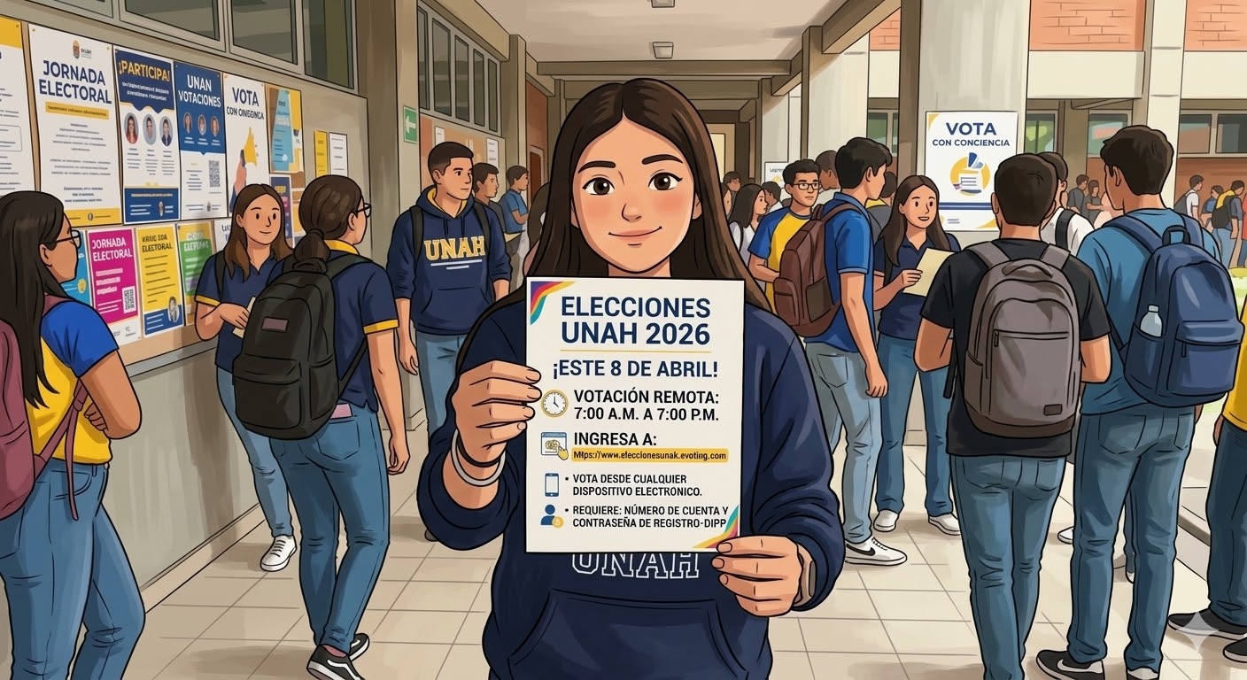 Este próximo 8 de abril se llevará a cabo el proceso electoral estudiantil 2026 en la Universidad Nacional Autónoma de Honduras (UNAH). Como estudiante, tienes la responsabilidad de elegir a tus representantes, quienes conformarán el autogobierno estudiantil y participarán en los órganos de gobierno universitario.