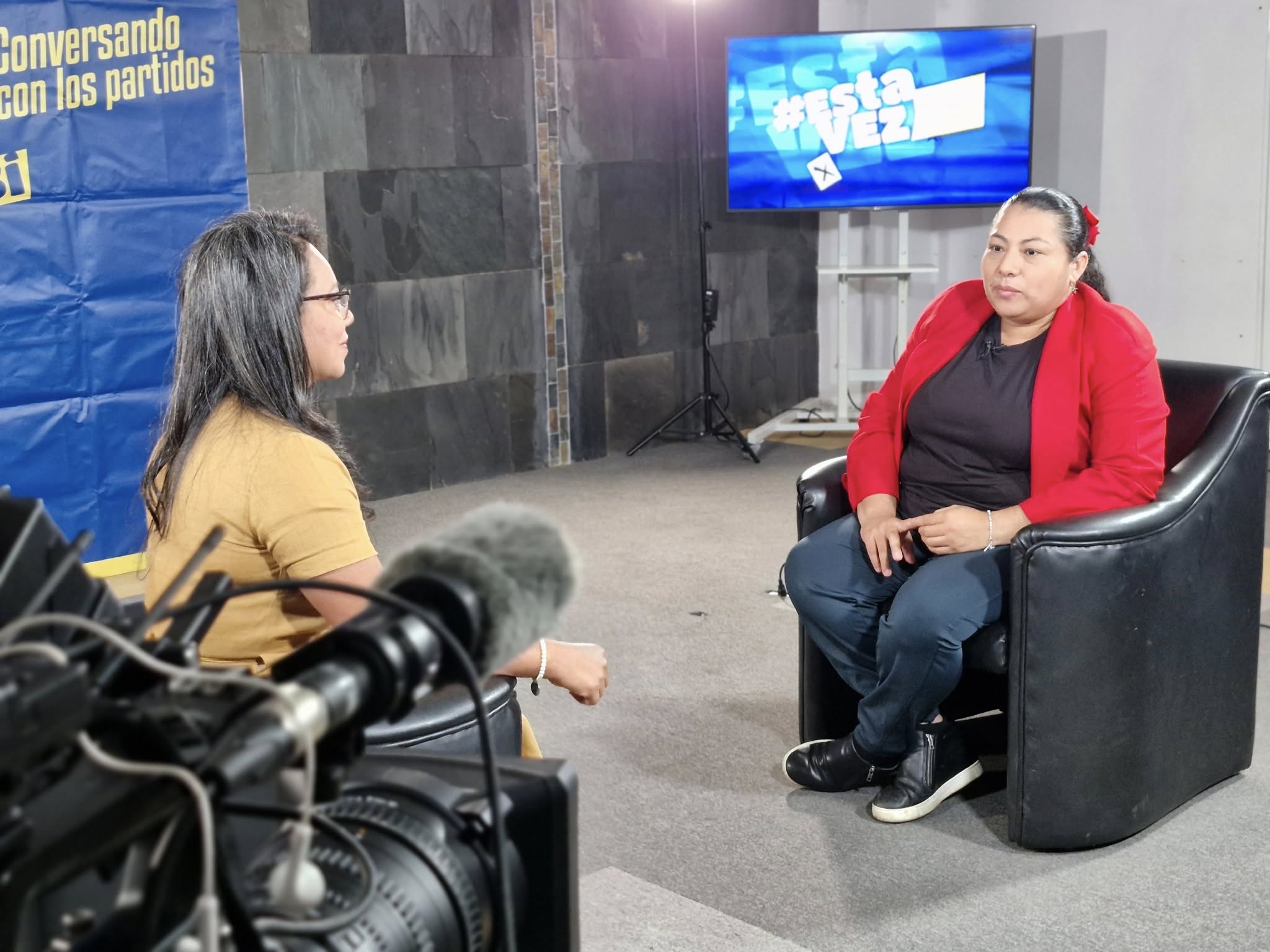 Periodista Ana Lozano, de TV UNAH, desarrolla entrevista a la candidata.